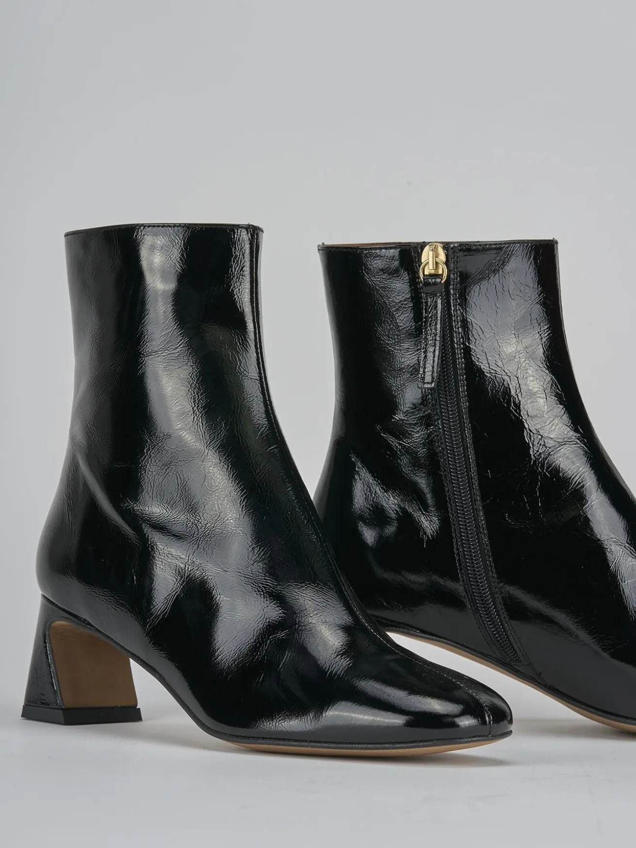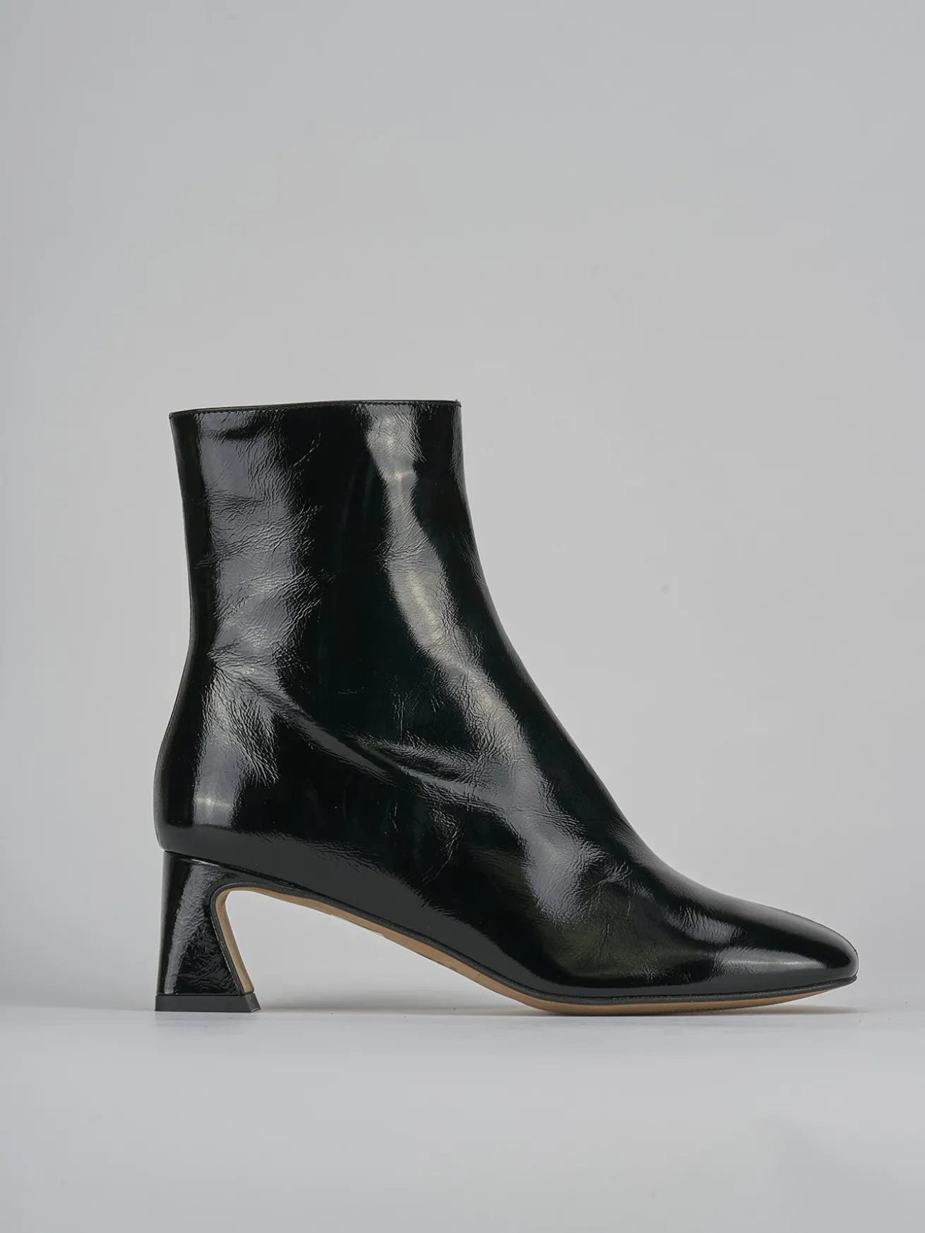 La tomaia in morbida pelle effetto verniciato dona un tocco di lucentezza e raffinatezza.