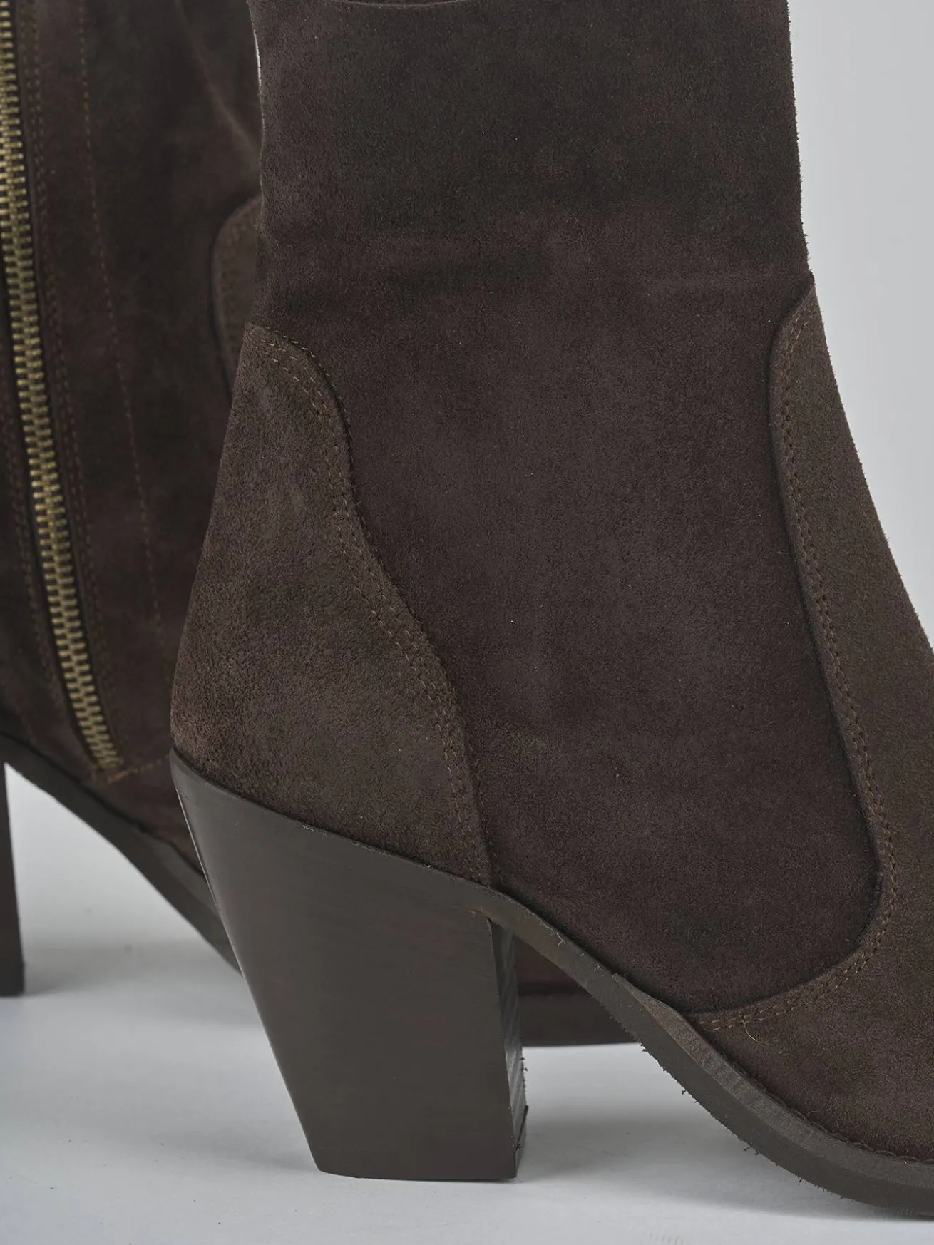 La tomaia in morbido camoscio rende questi stivaletti un must-have per il tuo guardaroba, mentre la punta sfilata e le cuciture a mano visibili aggiungono un dettaglio raffinato.