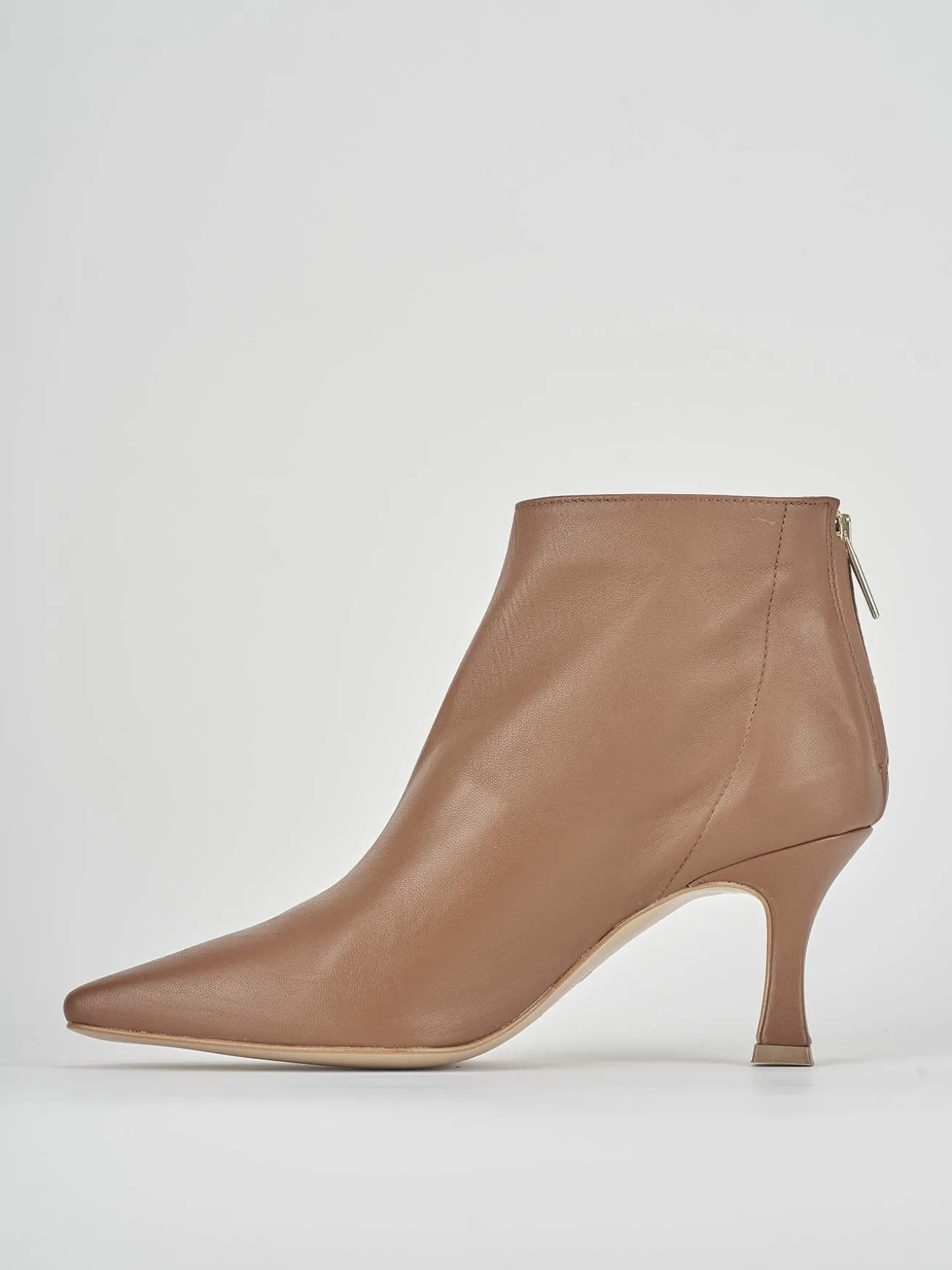Stivaletto tacco 7 cm fondo in cuoio e soletto interno in vera pelle. tomaia in morbida pelle nappata, punta sfilata, cerniera posteriore super-chic per il massimo del comfort.
