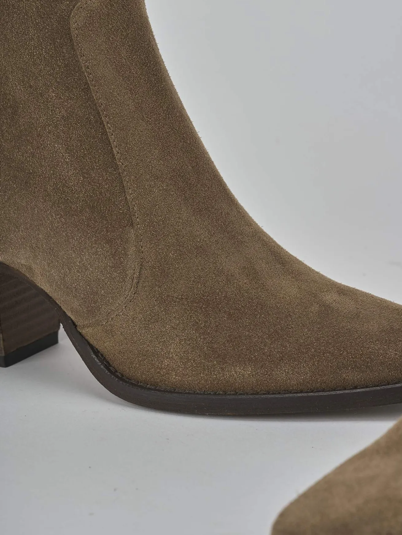 Stivaletto tacco 7 cm fondo in gomma e soletto interno in vera pelle. Tomaia in morbido camoscio, punta sfilata, cerniera laterale, cuciture in rilievo, gambale sfoderato morbido taglio a vivo e tacco cubano. Dalle linee eleganti sono una novità da aggiungere ai tuoi look.