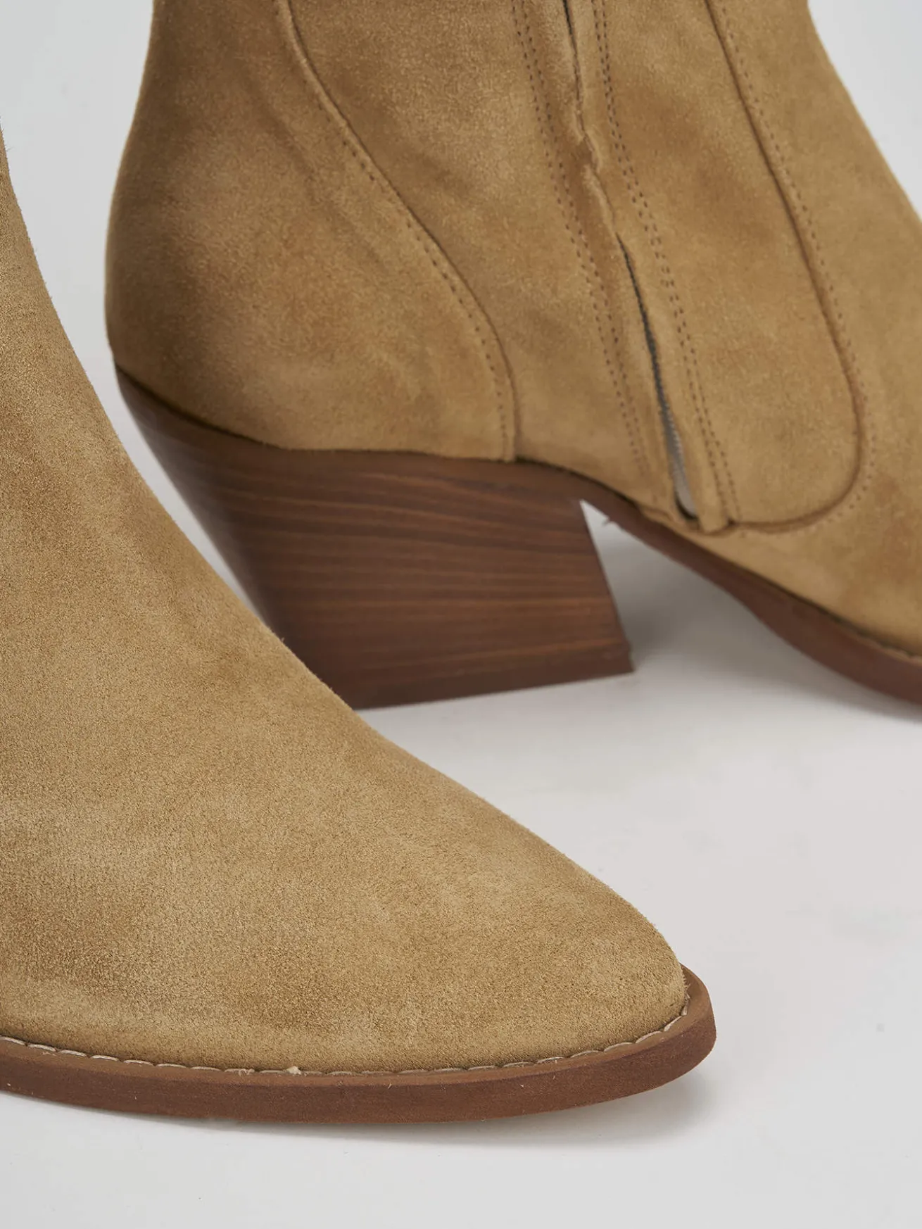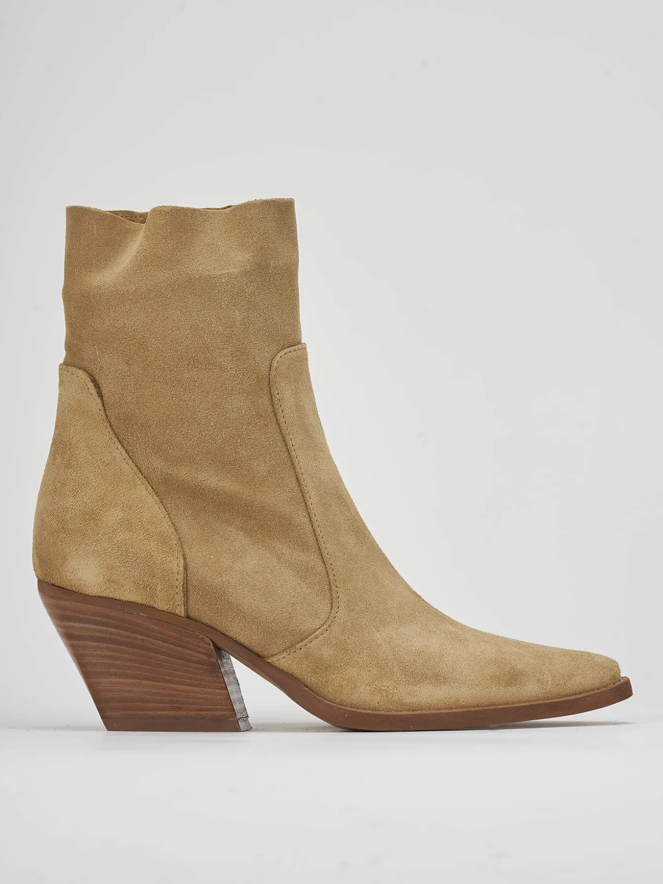 Stivaletto tacco 7 cm fondo in cuoio e soletto interno in vera pelle. tomaia in morbido camoscio, punta sfilata, cerniera laterale, cuciture in rilievo, tacco cubano. dalle linee eleganti sono una novità da aggiungere ai tuoi look.