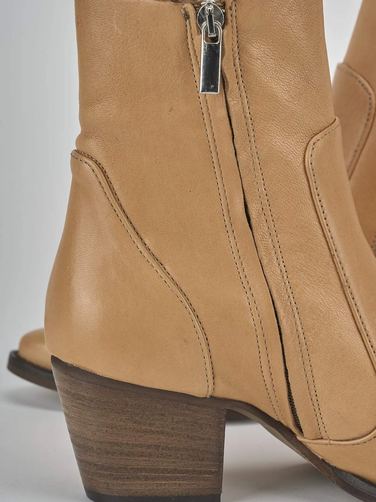 Stivaletto tacco 7 cm fondo in gomma e soletto interno in vera pelle. Tomaia in morbida pelle nappata, punta sfilata, cerniera laterale, cuciture in rilievo, gambale sfoderato morbido taglio a vivo e tacco cubano. Dalle linee eleganti sono una novità da aggiungere ai tuoi look.