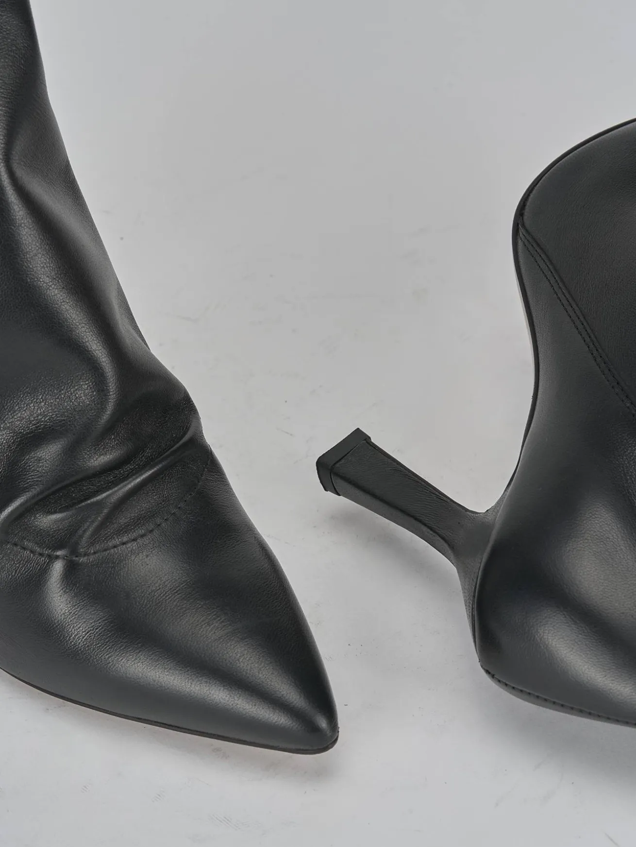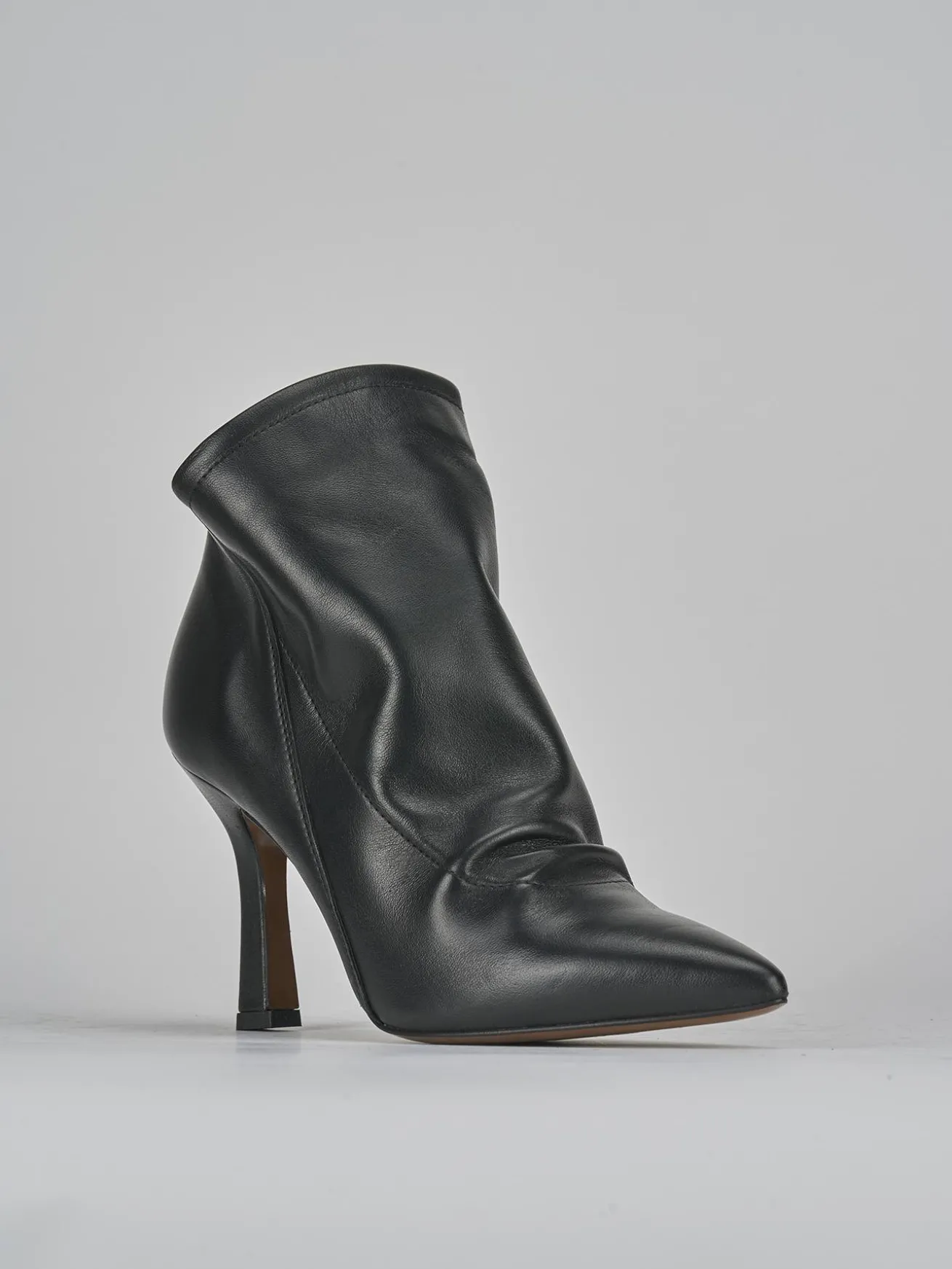 Realizzati in morbida pelle nappata, questi stivaletti presentano una punta sfilata che conferisce un’eleganza senza tempo.
