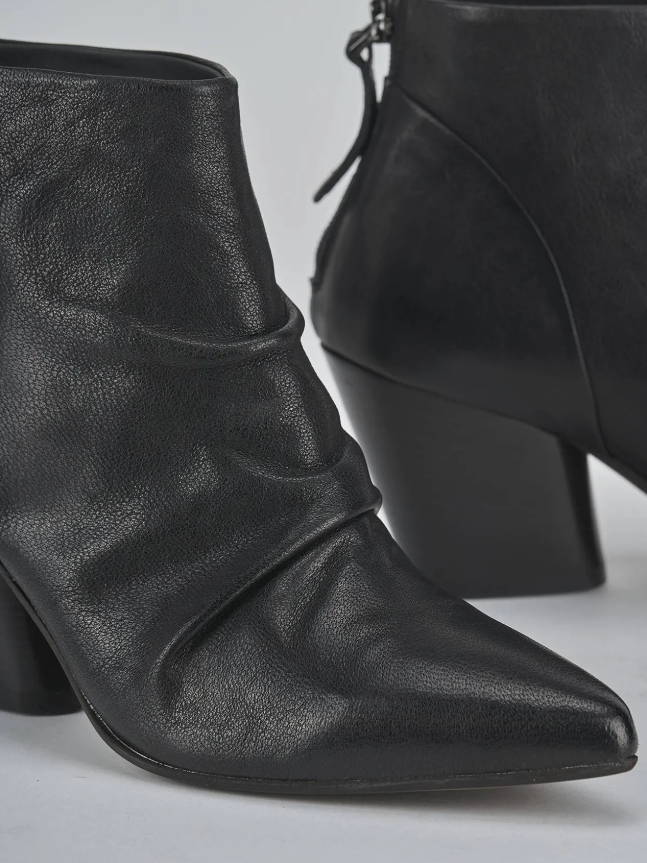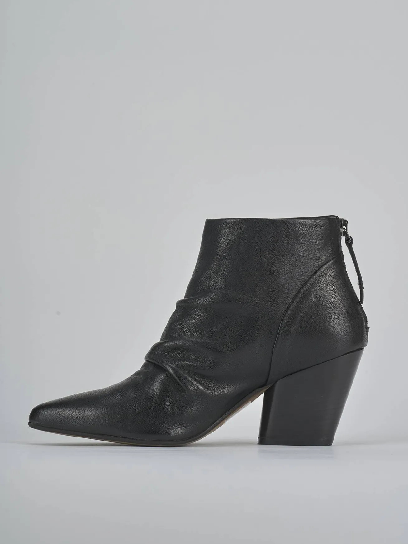 Stivaletto tacco 7 cm fondo in leggera gomma e soletto interno in vera pelle. Tomaia in morbida pelle, punta sfilata, arricciato leggermente sul collo del piede, cuciture a mano, comoda cerniera posteriore e tacco cubano. Perfetto per qualsiasi tuo outfit.