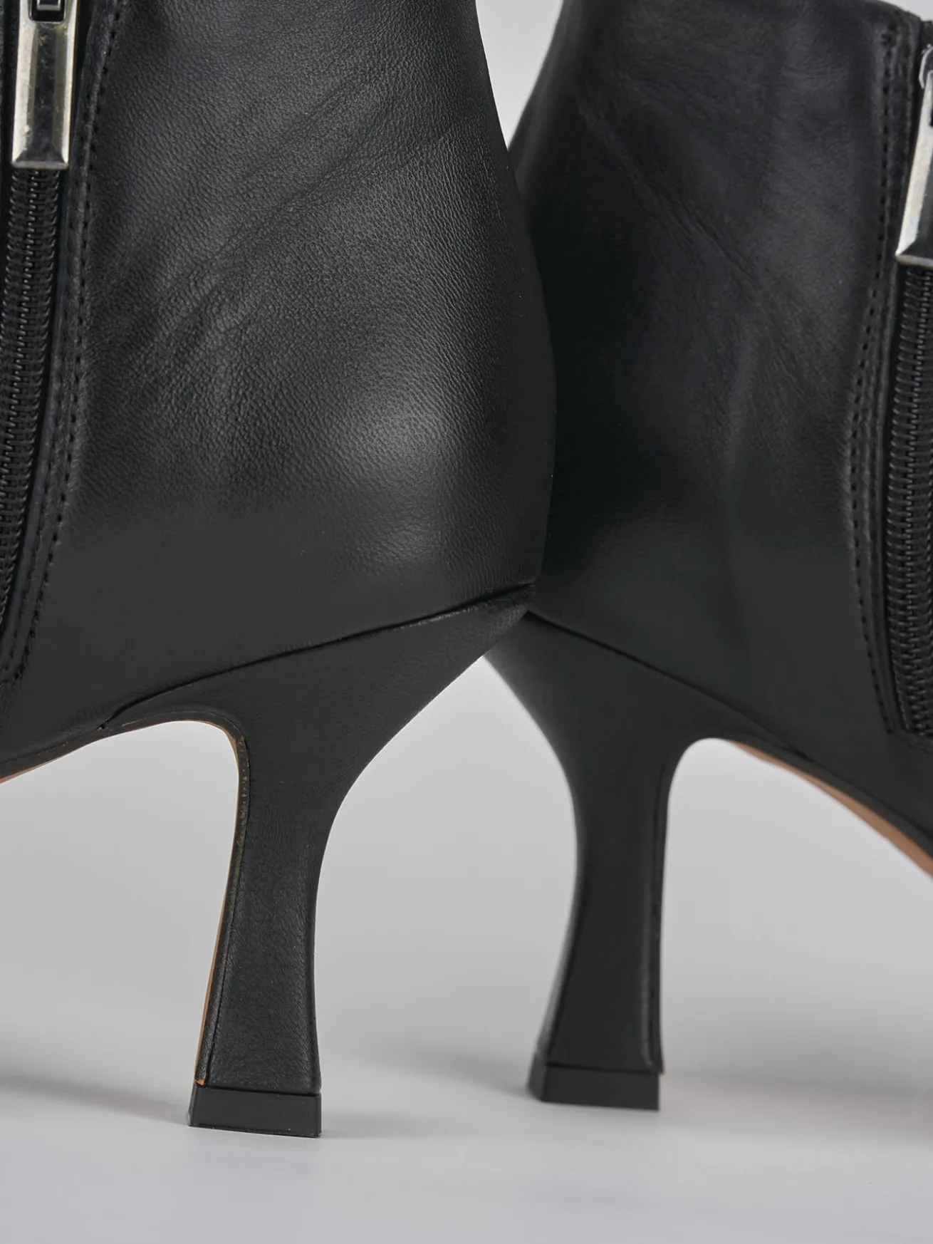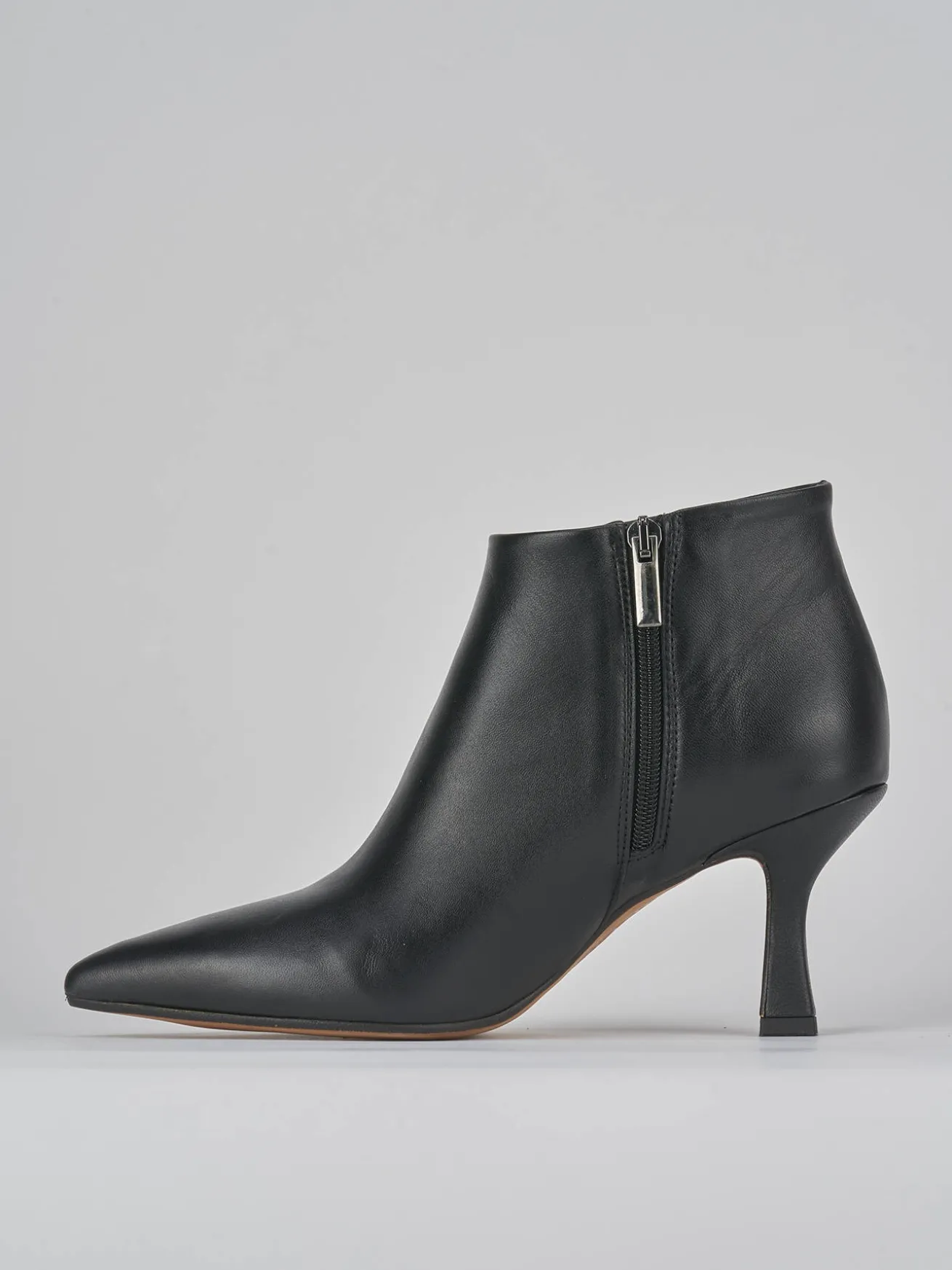 Stivaletto tacco 7 cm fondo in gomma e soletto interno in vera pelle. Tomaia in morbida pelle di ottima qualità, punta sfilata, cerniera laterale e tacco a rocchetto per un look di classe.