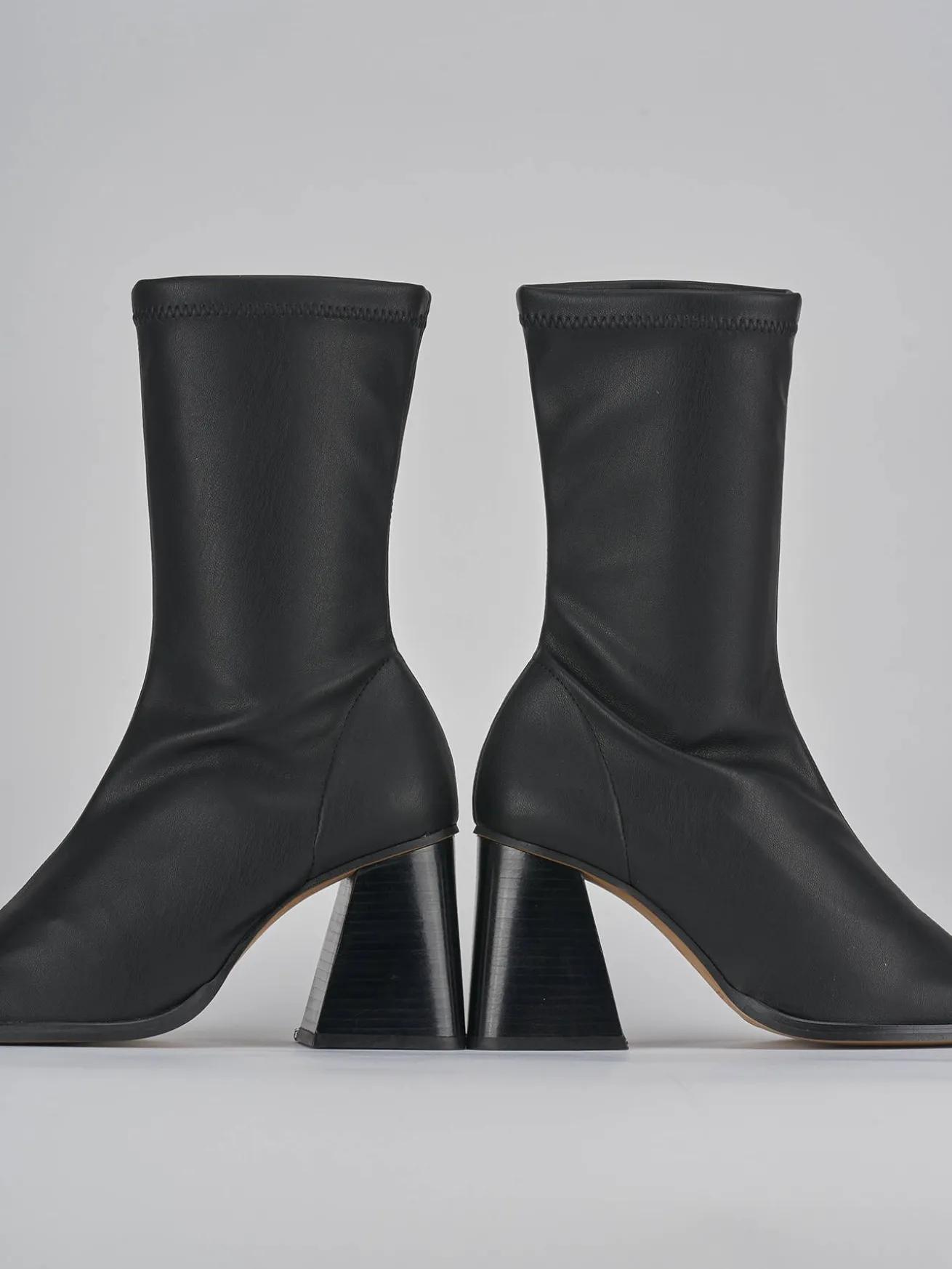 tronchetto tacco 7 cm fondo in gomma e soletto interno in vera pelle. tomaia in morbida pelle, punta squadrata, cuciture a vista, gambale elasticizzato per il massimo del comfort. tacco grosso e guardolo sporgente per un look chic.