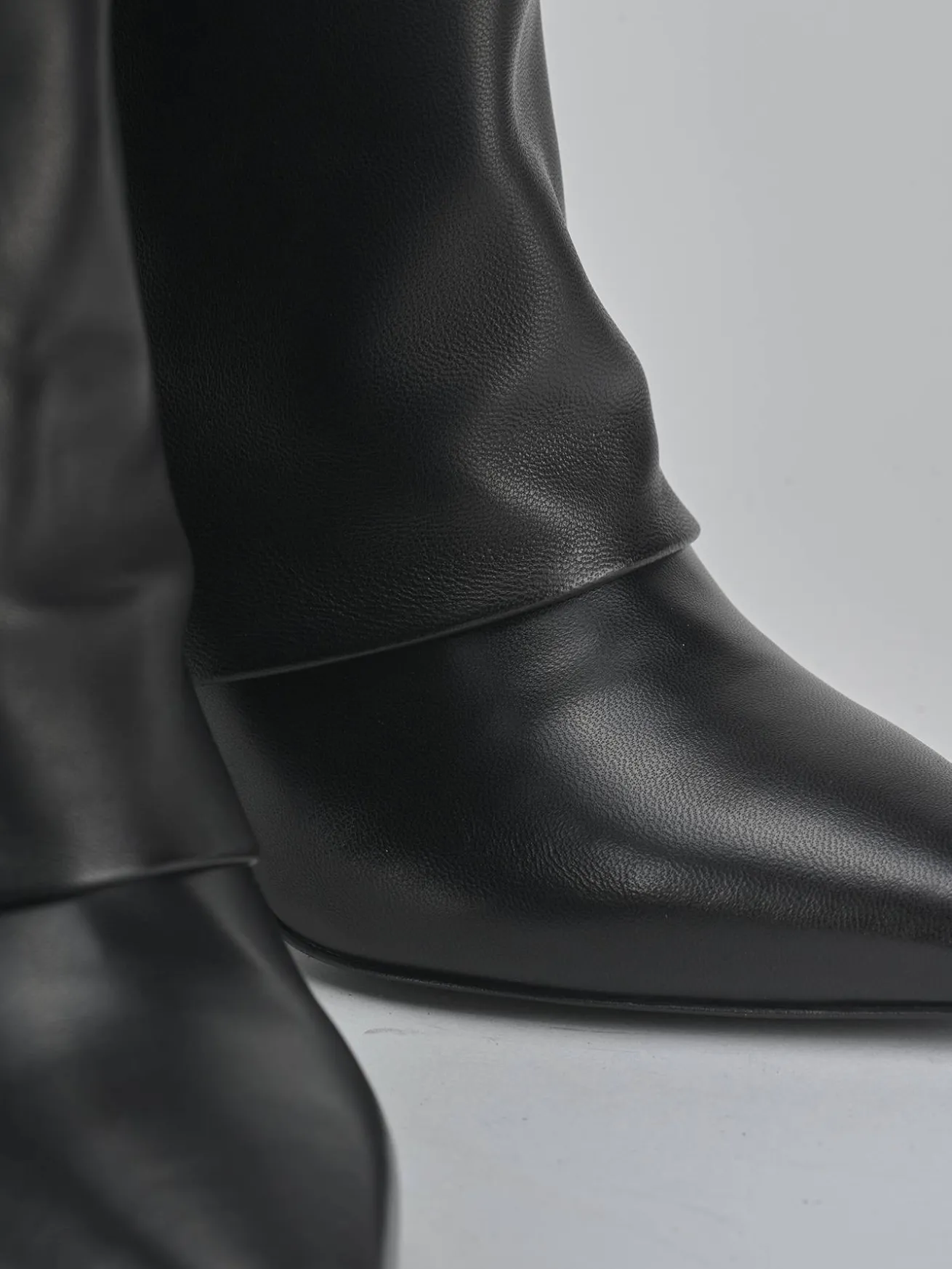 La tomaia in morbida pelle nappata avvolge il piede con un risvolto fino al tallone, mentre la punta sfilata dona un aspetto sofisticato.