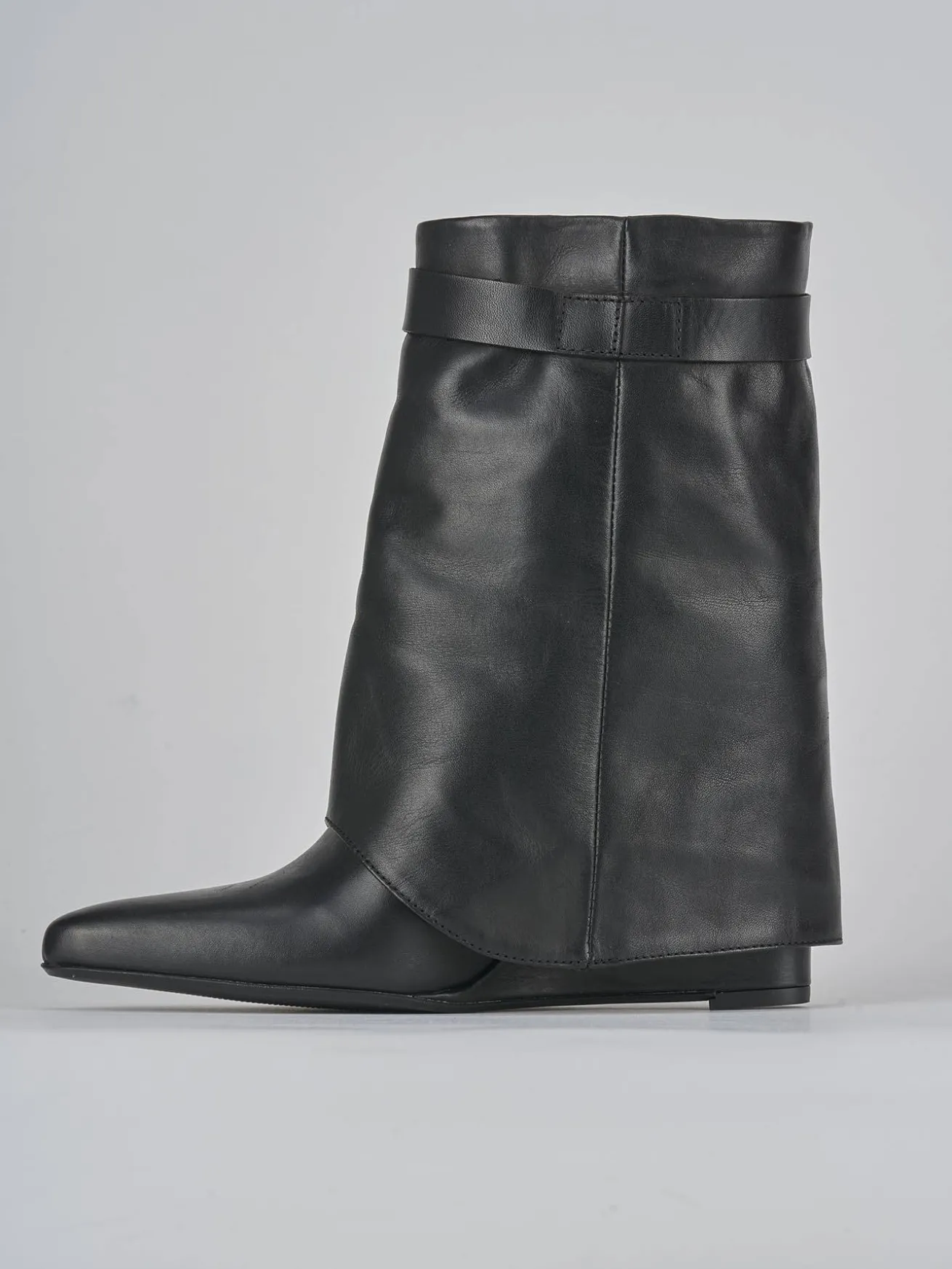 La punta sfilata e le cuciture a mano ne esaltano l’eleganza, mentre il risvolto e l’accessorio laterale donano un tocco di originalità.