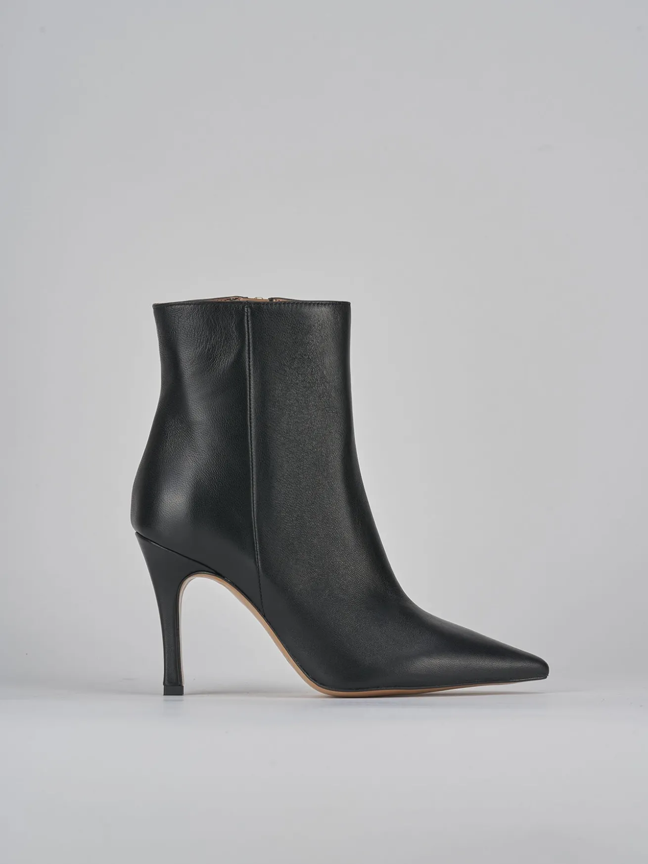 Stivaletto tacco 9 cm fondo in leggera gomma e soletto interno in vera pelle. tomaia in morbida pelle, punta sfilata, cerniera laterale e tacco fino. dalle linee eleganti e versatili per ogni tuo look.