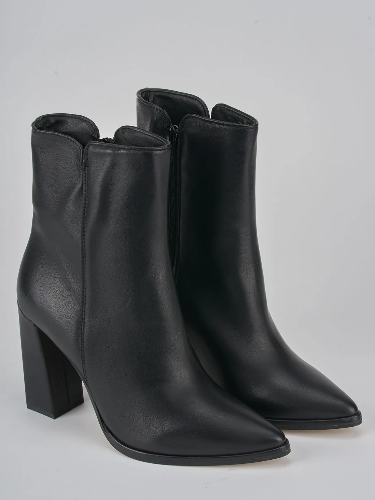 La punta sfilata aggiunge un tocco di raffinatezza, mentre il tacco grosso garantisce stabilità e stile.