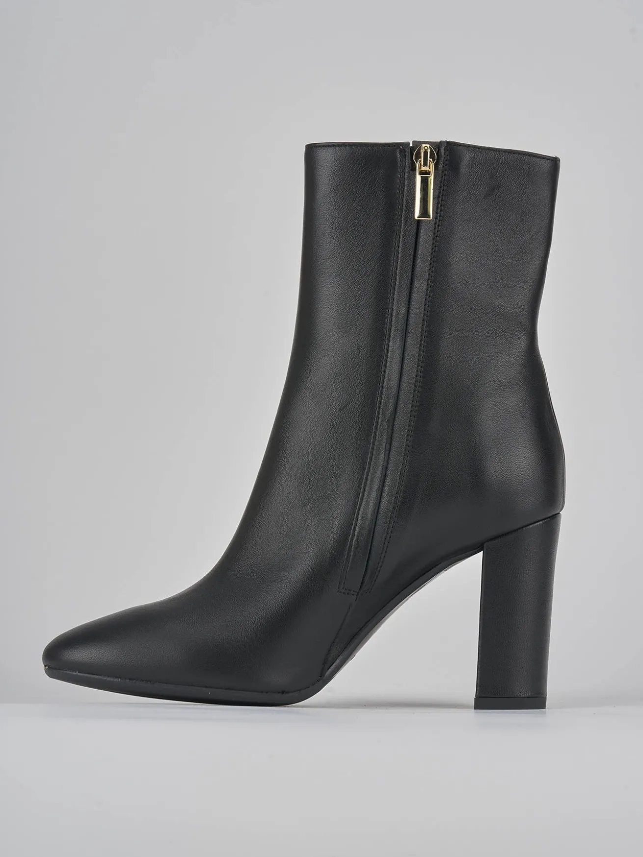Realizzato in morbida pelle nera, questo stivaletto si distingue per la sua punta sfilata e il design sofisticato.