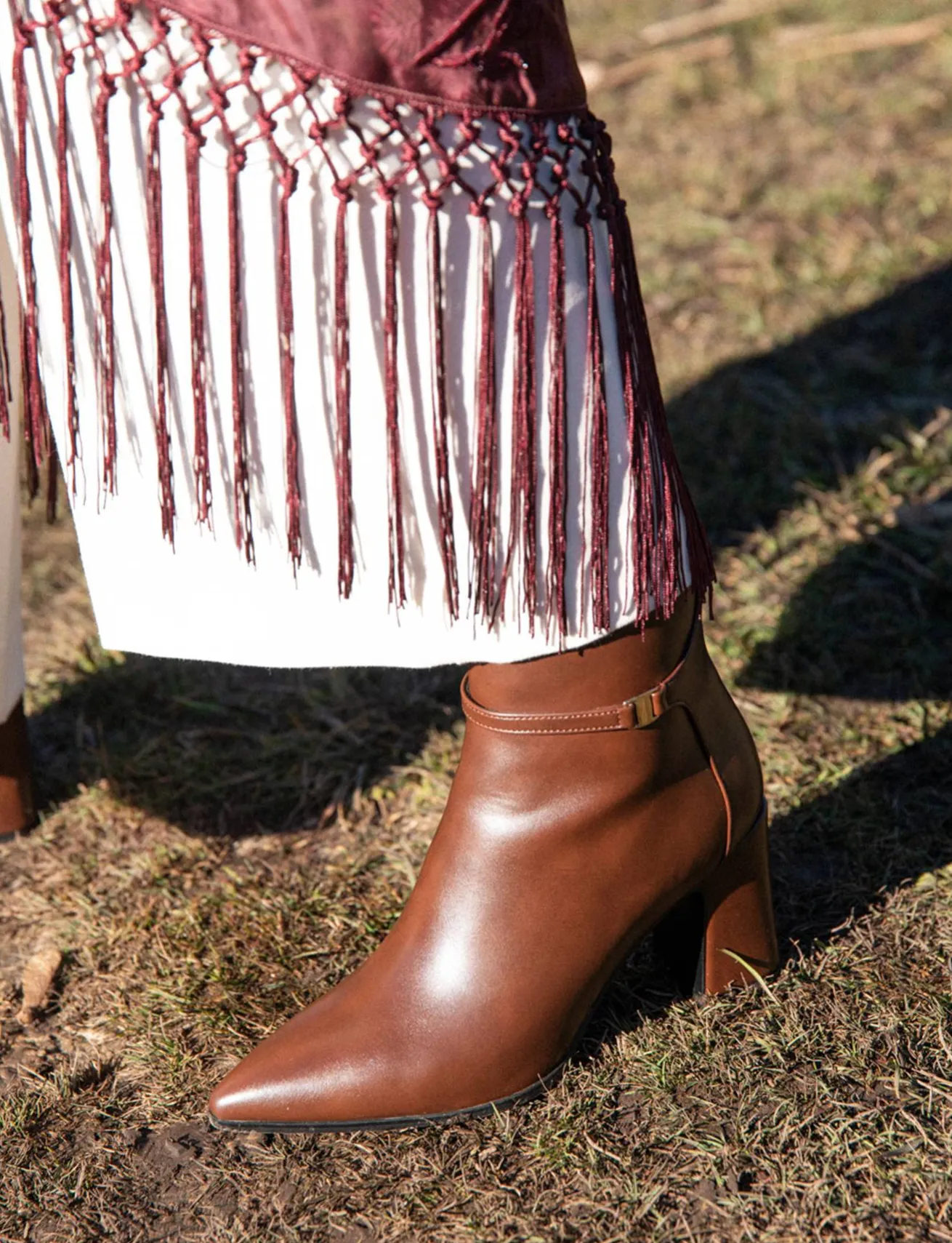 Realizzati in pelle sostenibile di colore testa di moro, offrono un’eleganza senza tempo grazie alla loro tomaia in morbida pelle e alla punta sfilata.