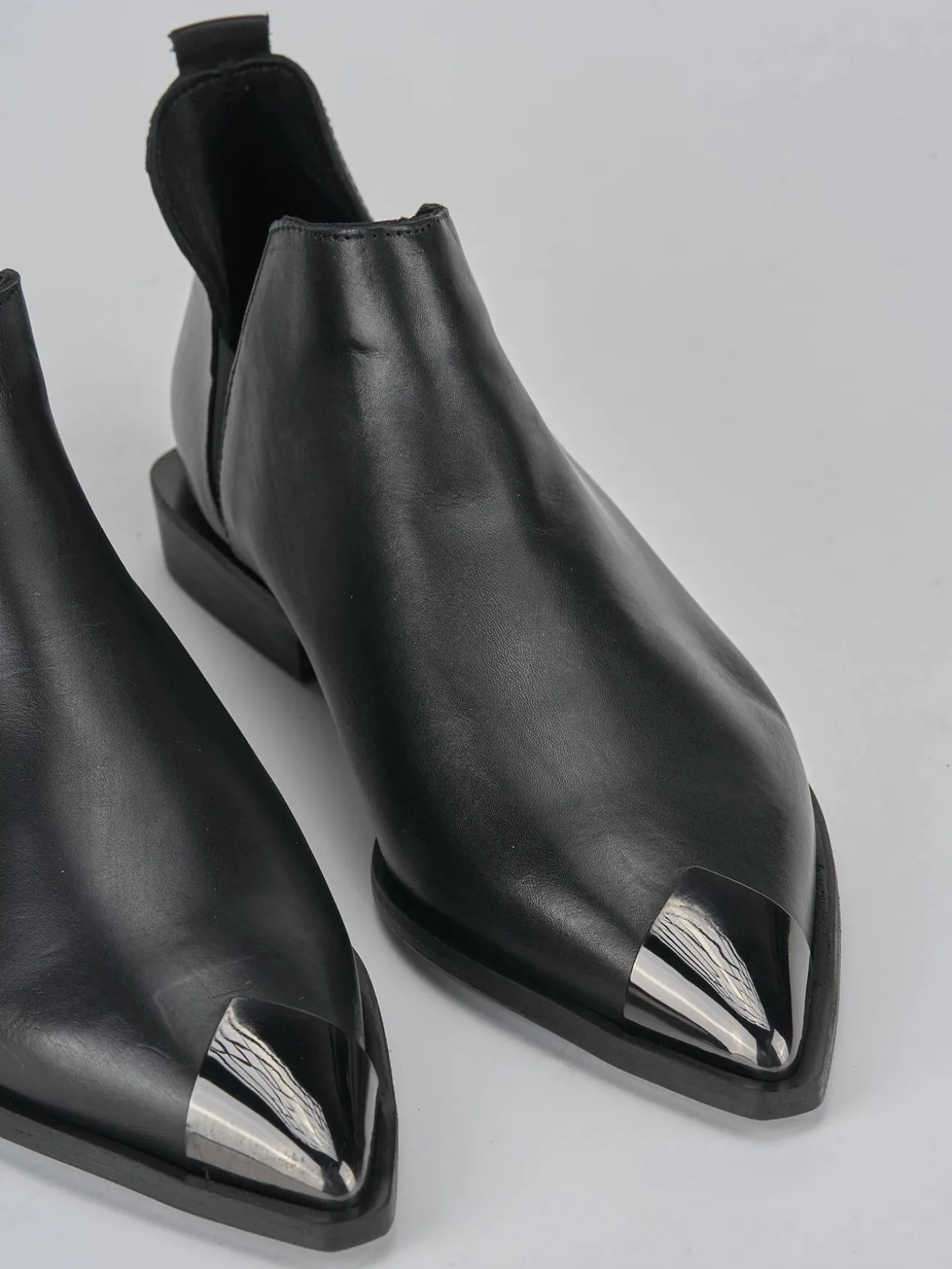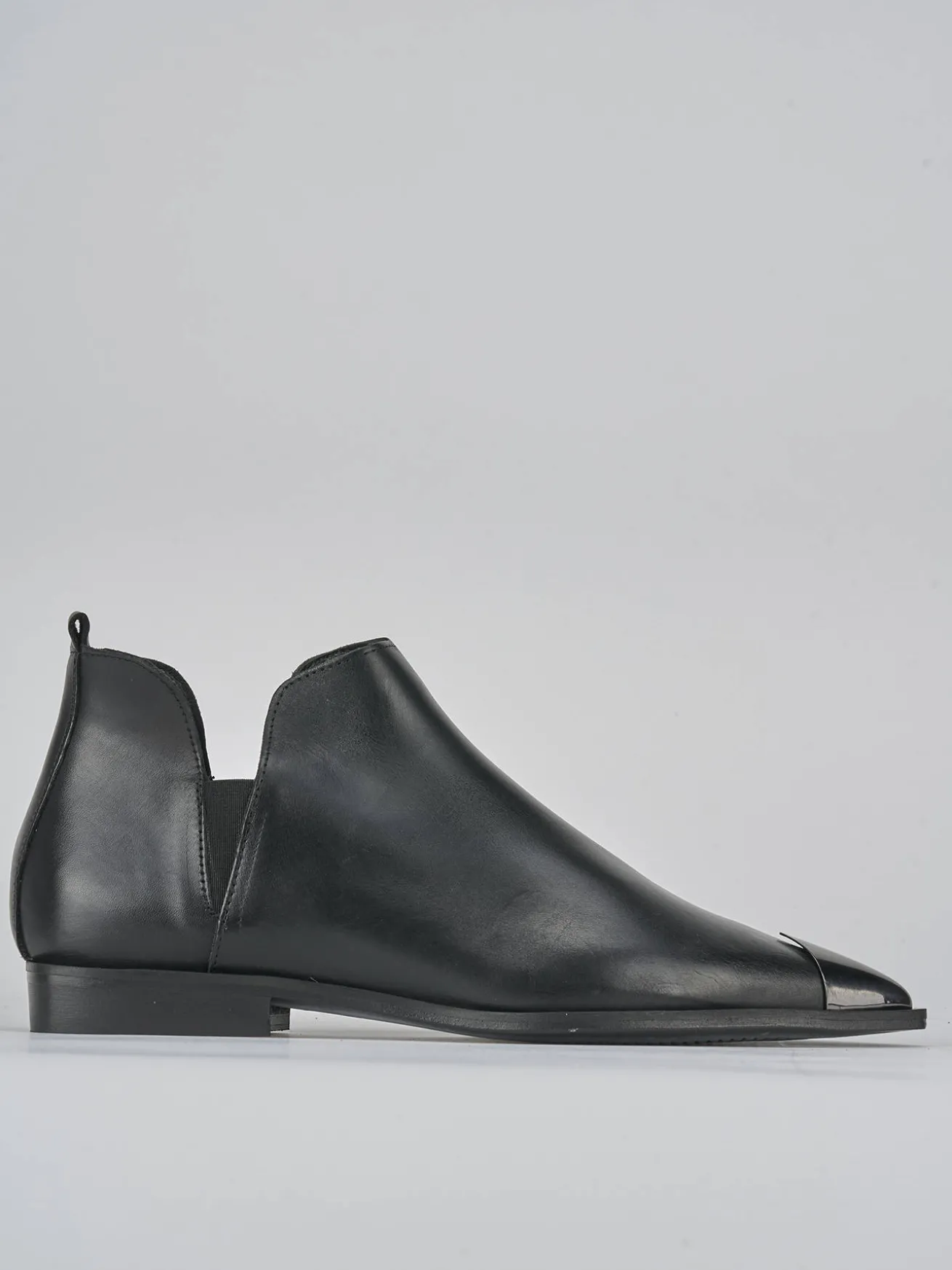 Stivaletto tacco 2 cm, fondo in leggera gomma e soletto interno in vera pelle. Tomaia in morbida pelle, punta sfilata, puntale in metallo, apertura sui lati con piccola fascia elastica per facilitare la calzata. Ideale per ogni tuo look.