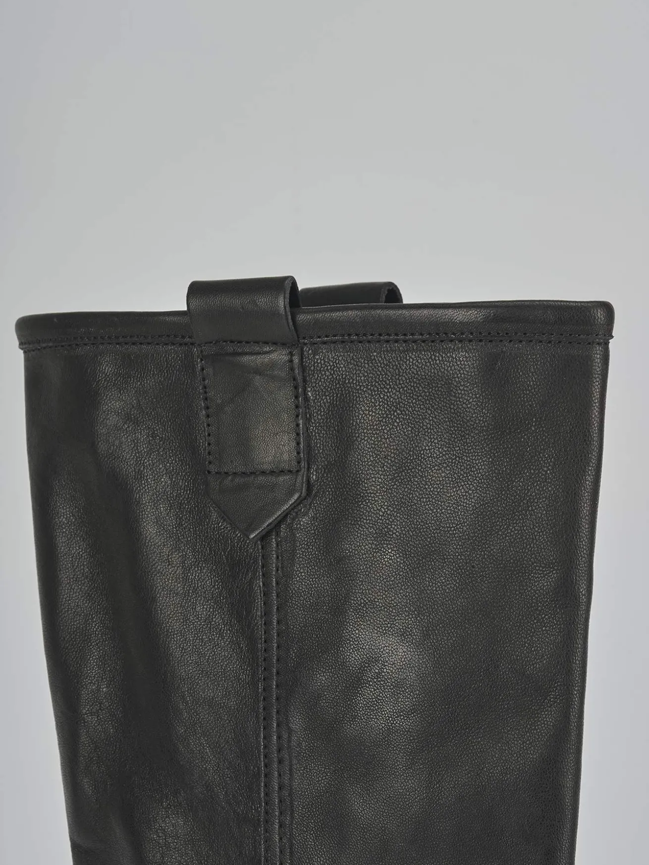 Le cuciture fatte a mano sul gambale, che si posiziona appena sotto il ginocchio, conferiscono un dettaglio artigianale unico.