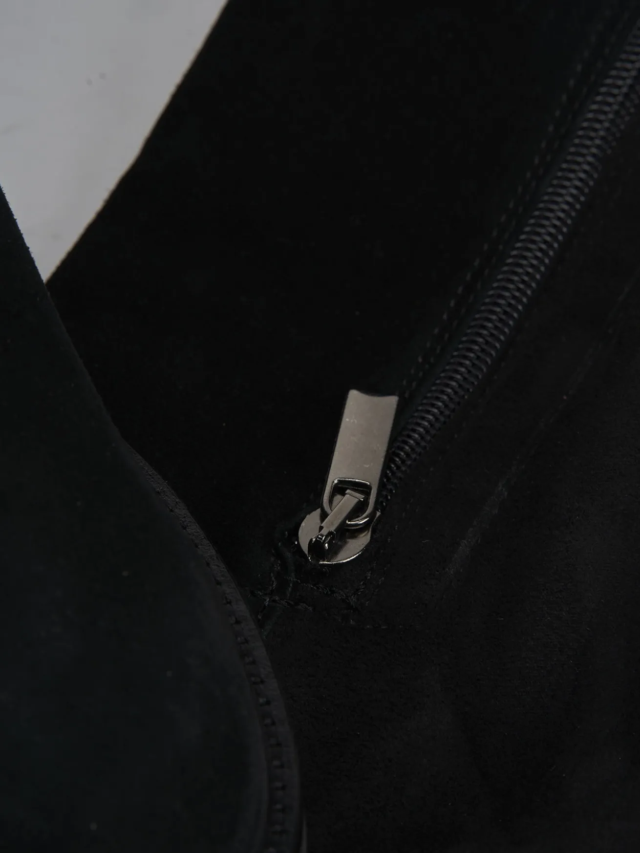 La tomaia in camoscio aggiunge un tocco di eleganza senza tempo, mentre la punta tonda e le cuciture visibili ne esaltano la raffinatezza.