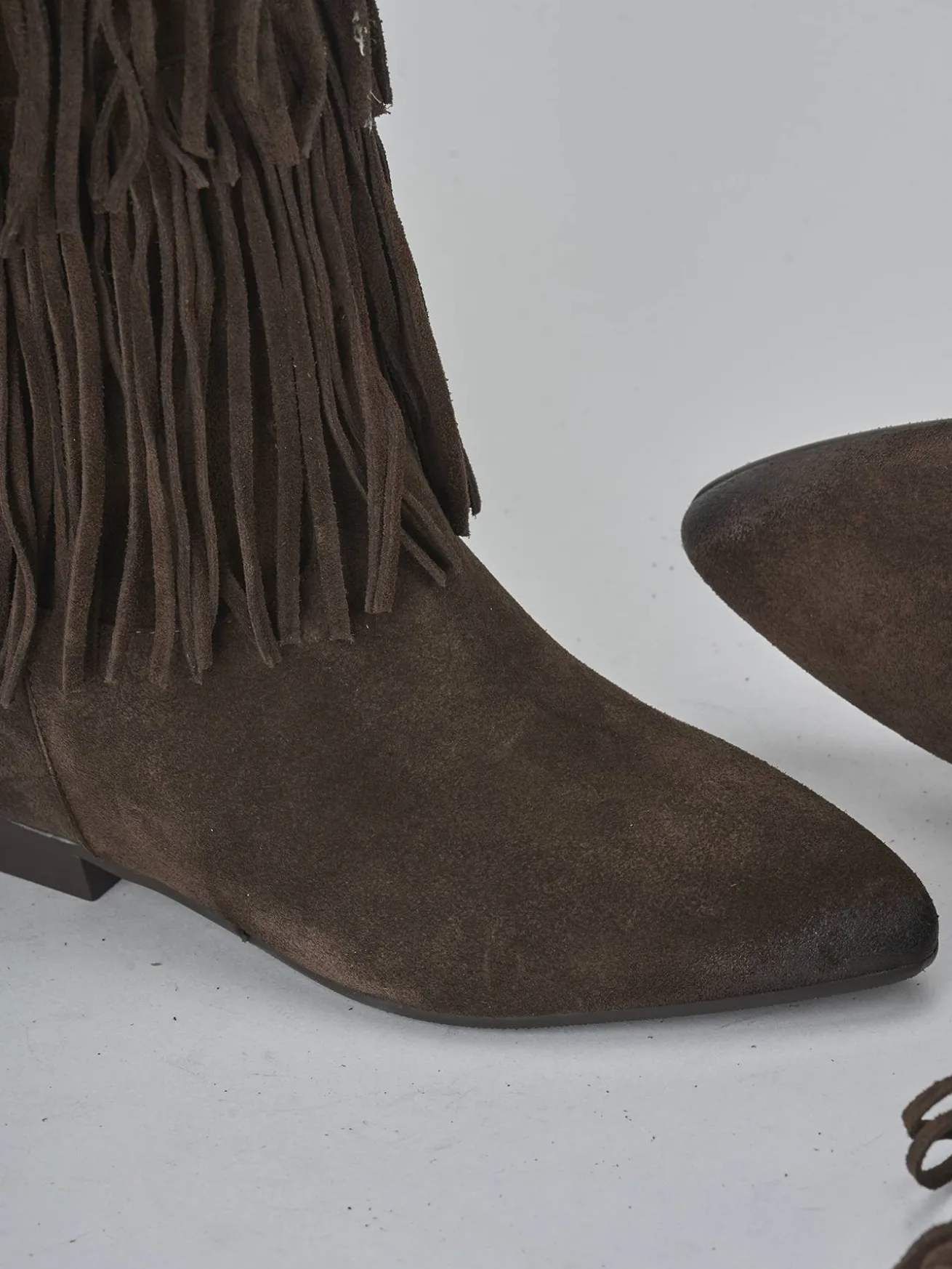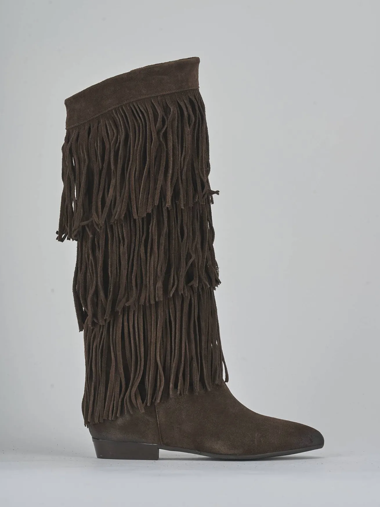 Le frange sul gambale, che si fermano appena sotto il ginocchio, donano movimento e stile a ogni passo.