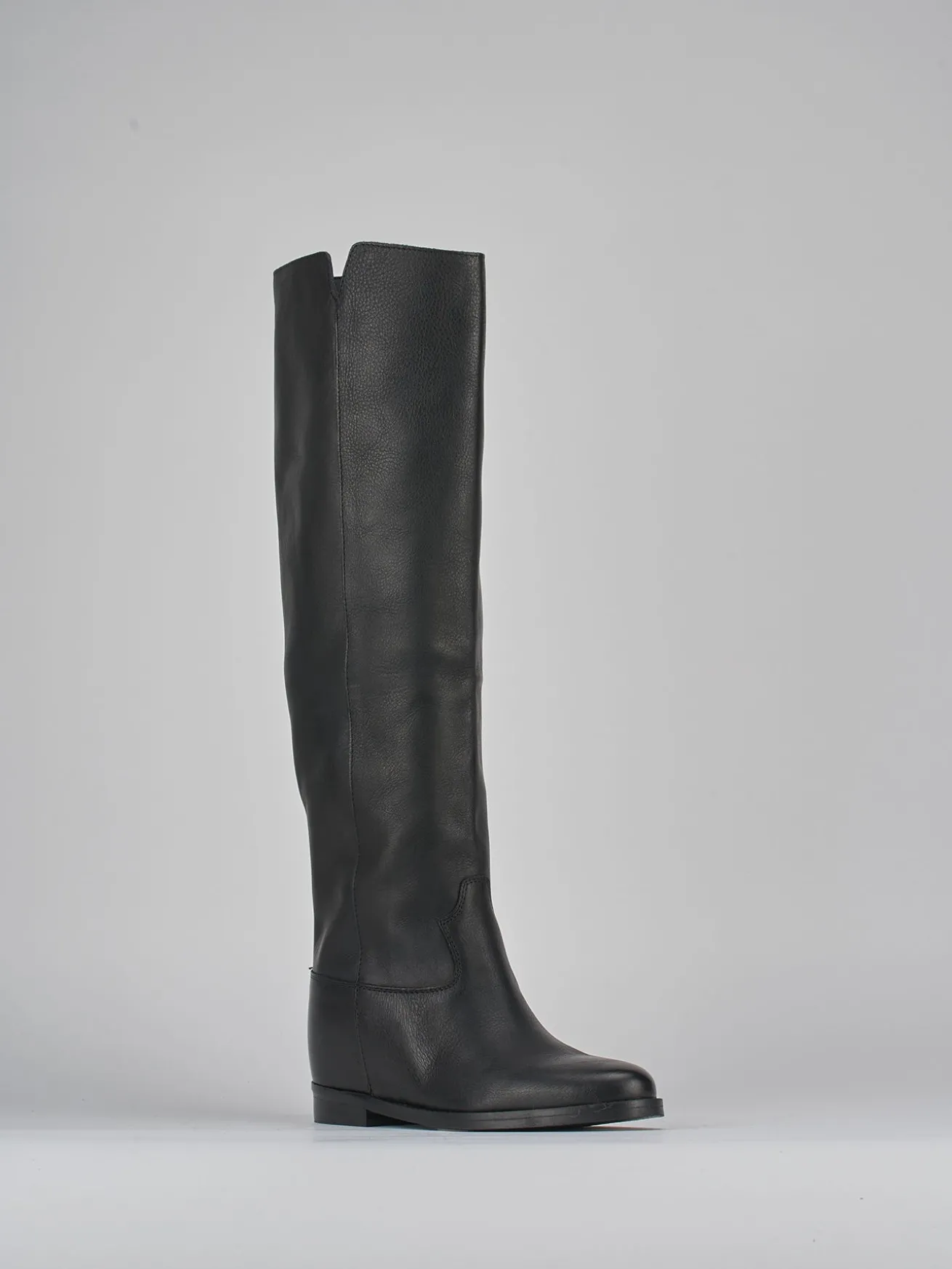 Il gambale dal design tubolare si estende appena sotto il ginocchio, arricchito da un moderno spacco laterale a V.