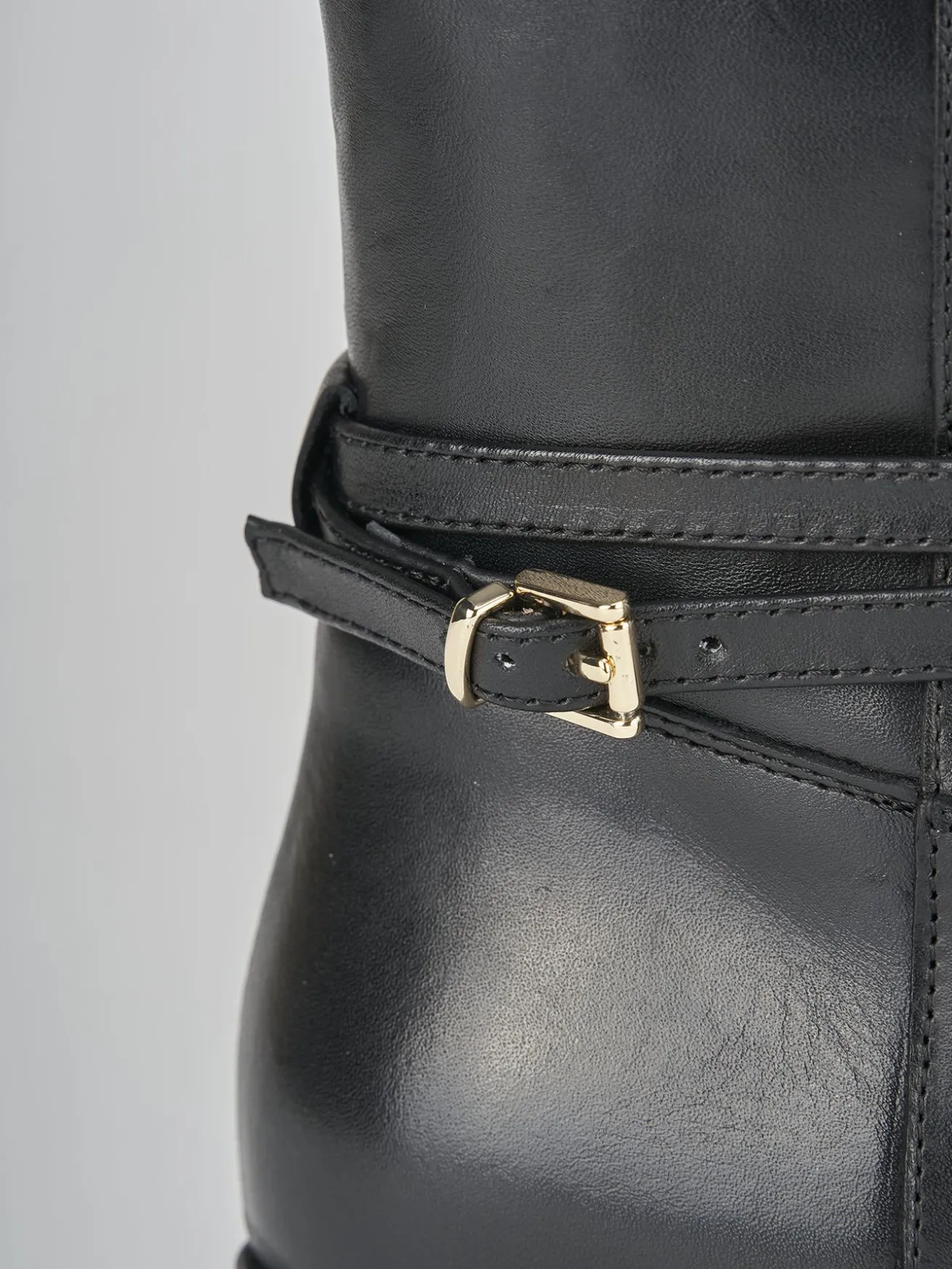 La tomaia in nappa è impreziosita da una cinghietta a doppio giro sulla caviglia, donando un tocco di raffinatezza.