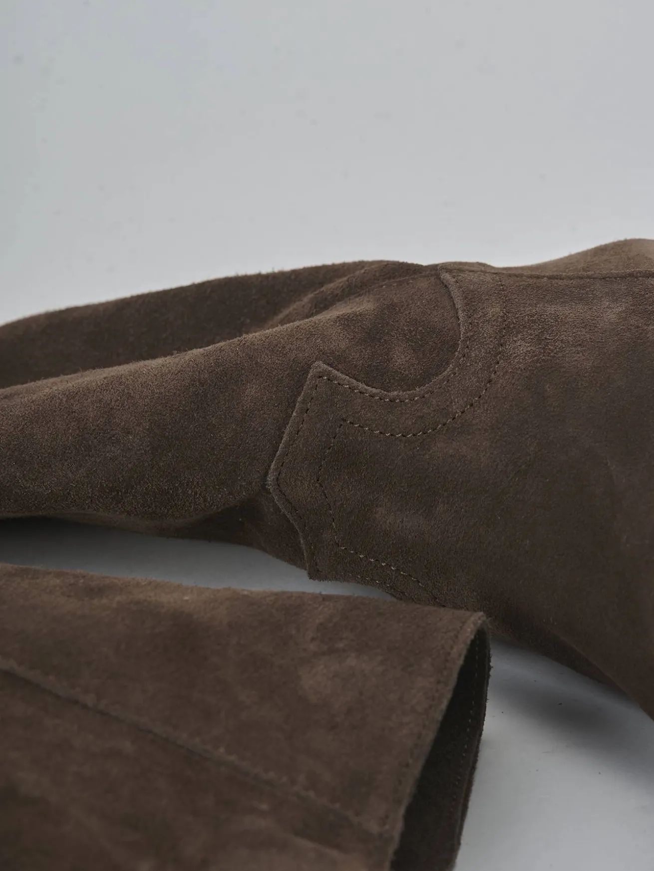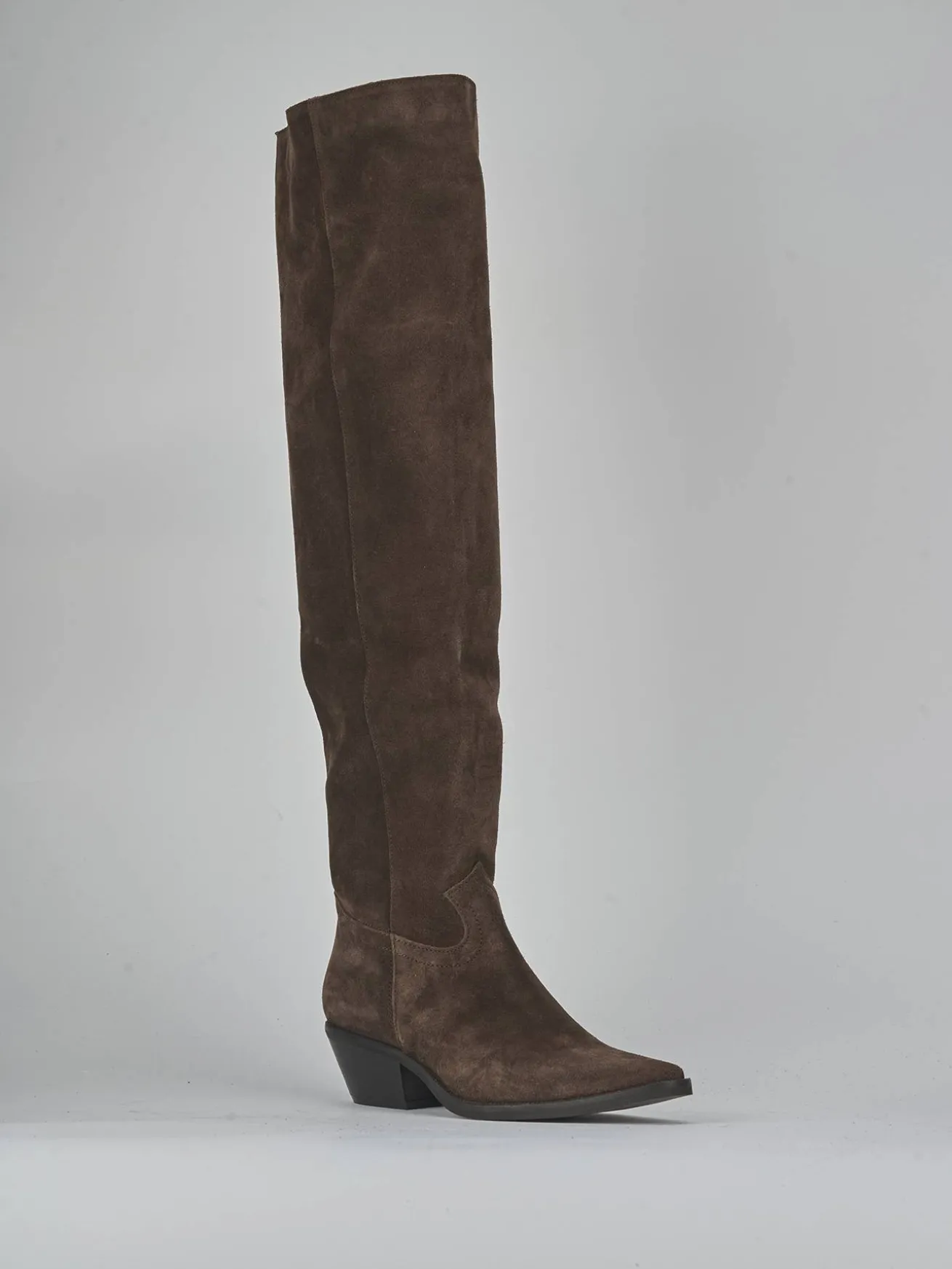 Le cuciture sul gambale, che arriva appena sopra il ginocchio, aggiungono un dettaglio distintivo e moderno.
