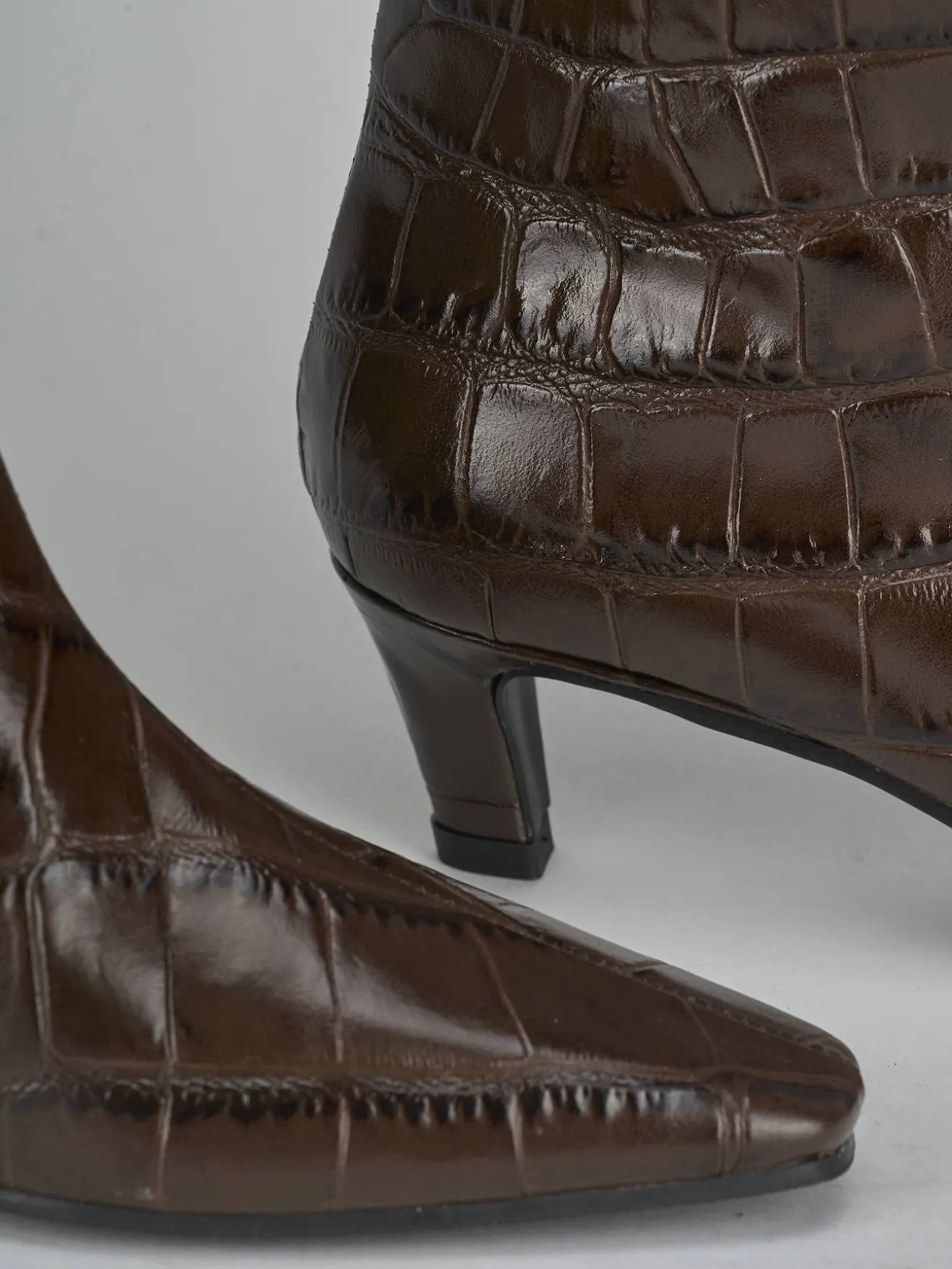 La punta sfilata e le cuciture a mano sul gambale tubolare, che arriva appena sotto il ginocchio, conferiscono un aspetto chic e curato.