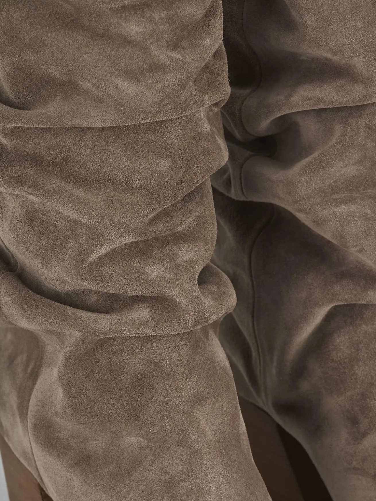 Stivale texano tacco 6 cm fondo in gomma e soletto interno in vera pelle. Tomaia in morbida pelle scamosciata, punta sfilata, cuciture a mano sul gambale che misura appena sotto il ginocchio. Tomaia arricciata, aprtura savasata frontalmente e tacco cubano per un look cool.