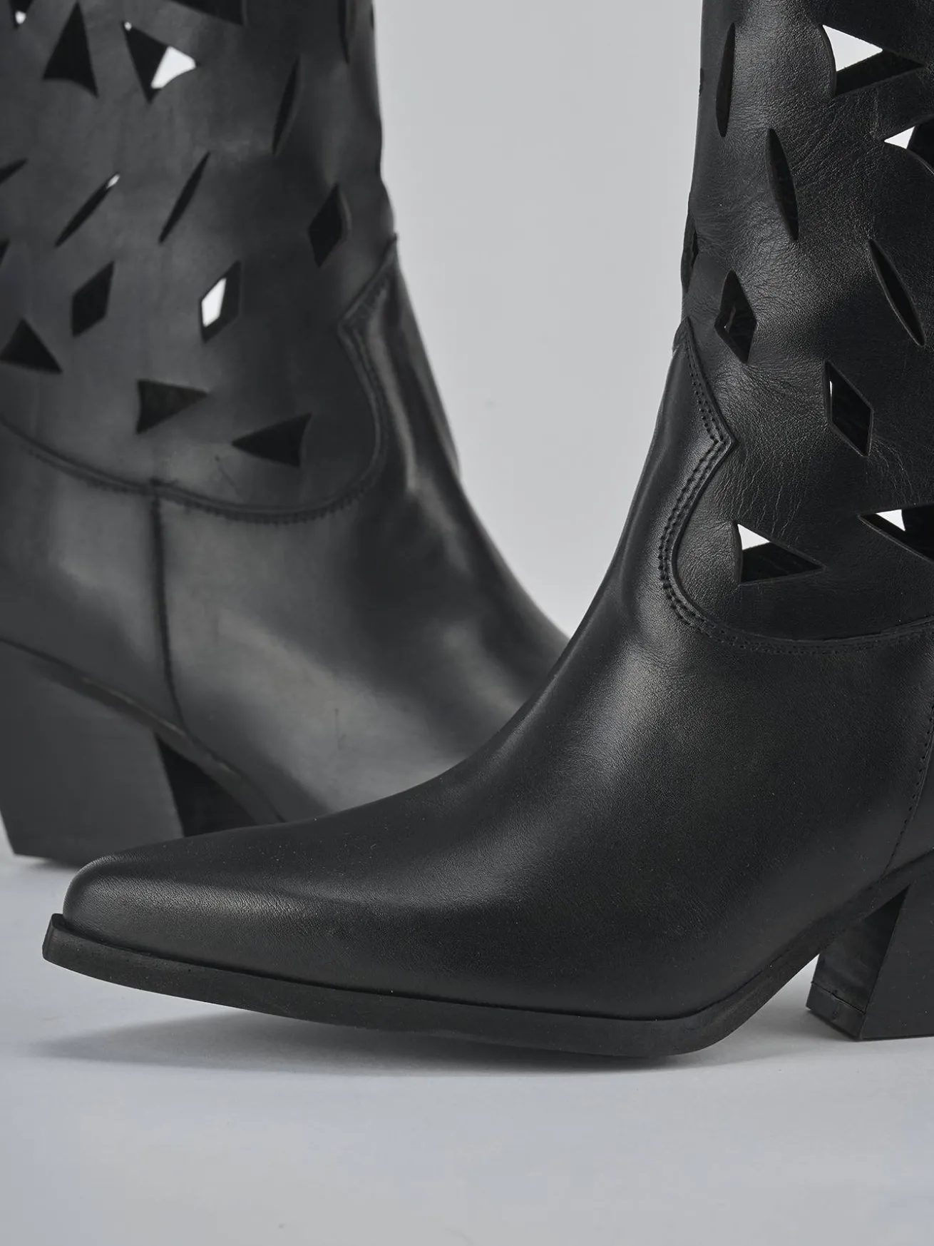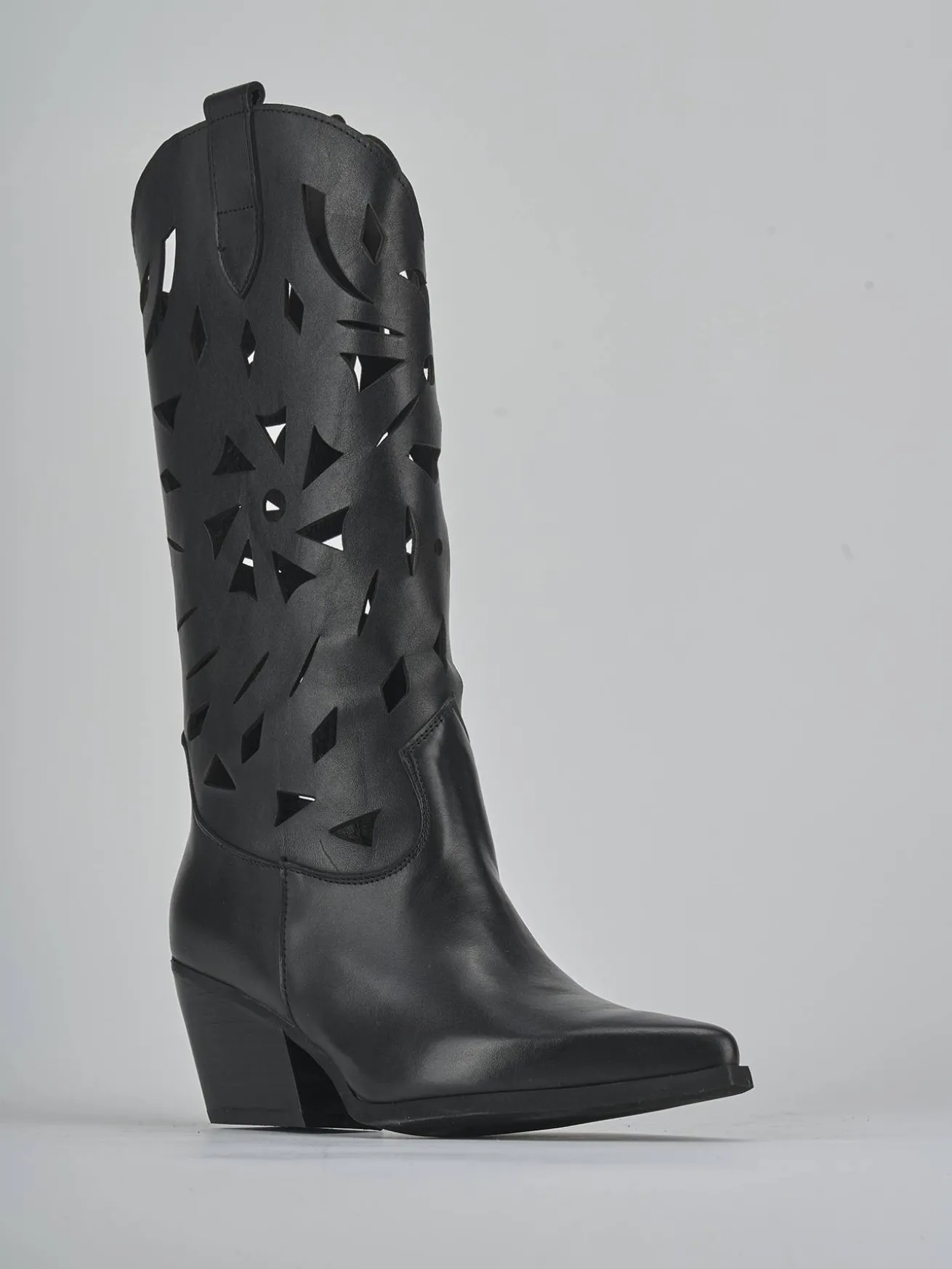 Stivale texano tacco 6 cm fondo in gomma e soletto interno in vera pelle. Tomaia in morbida pelle, punta sfilata, gambale laserato che misura appena sotto il ginocchio, ghette e tacco cubano. Guardolo appena sporgente. Perfetto per un look che ti farà notare.