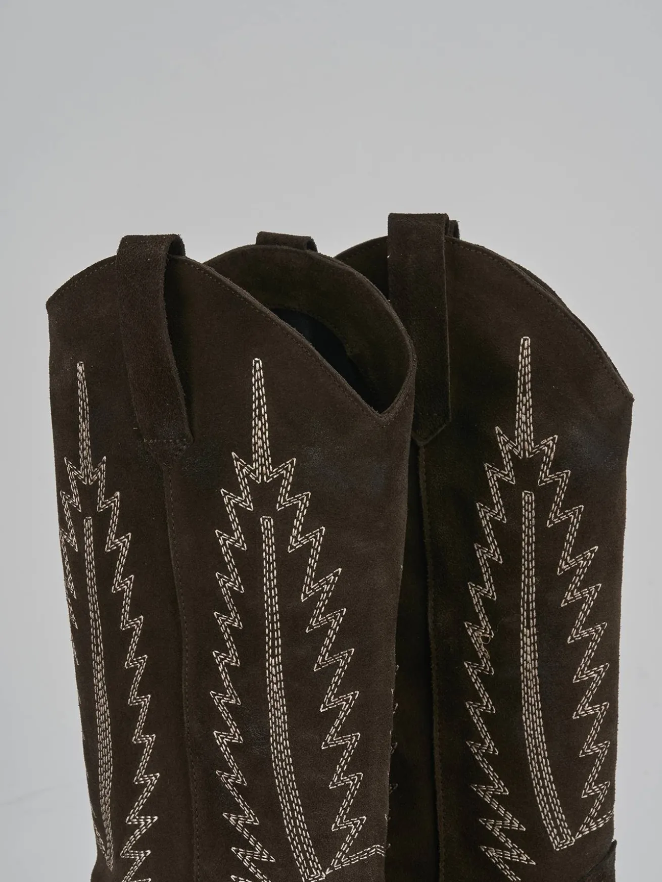 I ricami a contrasto sul gambale, che si ferma appena sotto il ginocchio, donano un dettaglio distintivo e sofisticato.