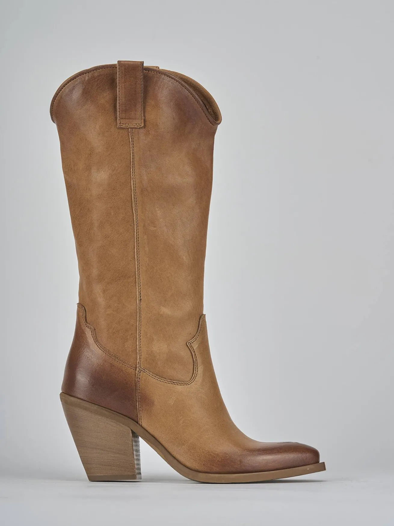 Stivale texano tacco 7 cm fondo in gomma e soletto interno in vera pelle. Tomaia in morbida pelle, punta sfilata, cuciture a mano, ghette che mantengono la forma del gambale che misura appena sotto il ginocchio. Comoda cerniera laterale e tacco cubano. Perfetto sia con un pantalone che con un vestito.