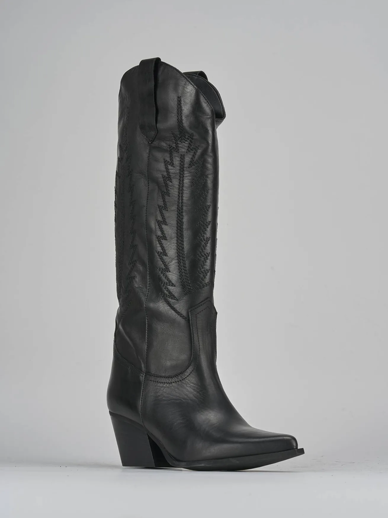 Il gambale è decorato con ricami accattivanti, arrivando appena sotto il ginocchio per un effetto davvero glam.
