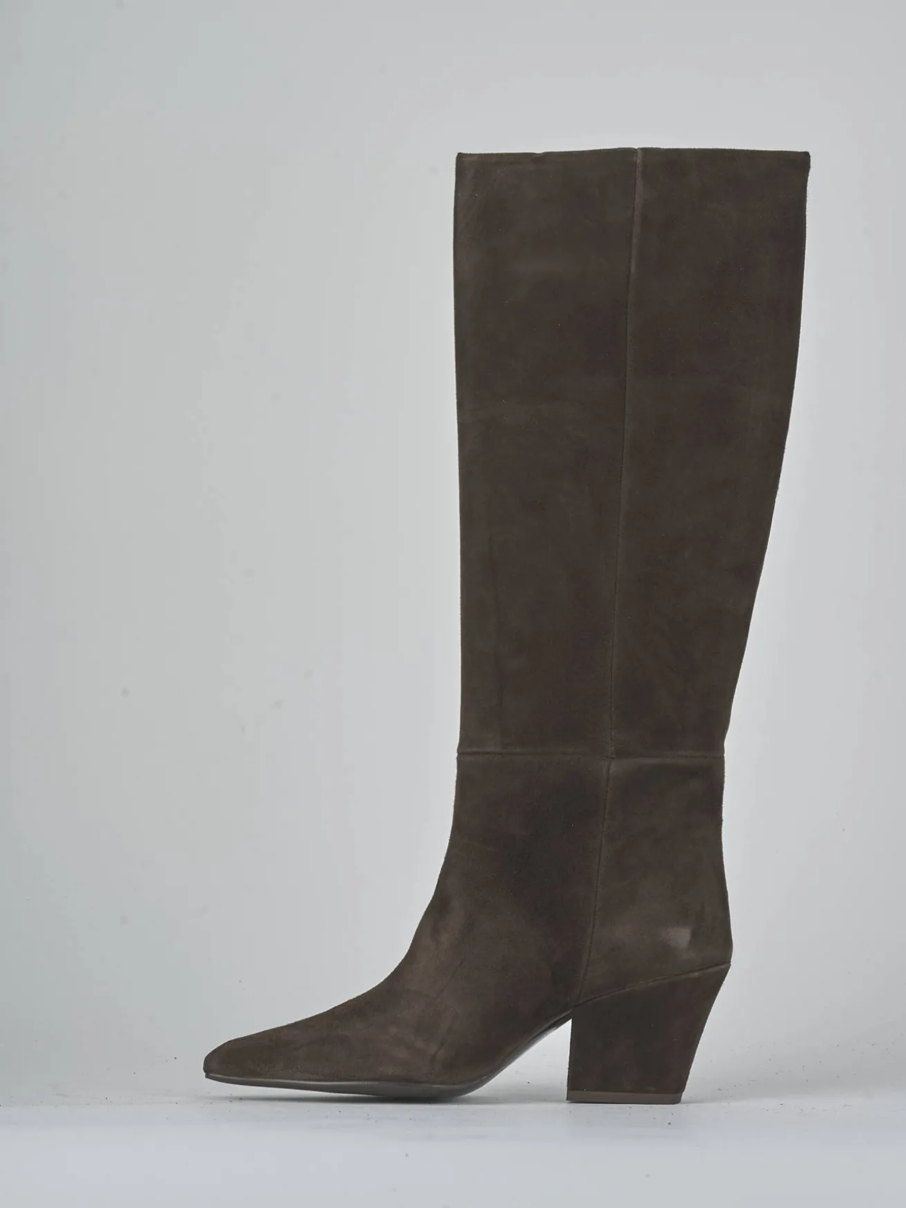 La punta affusolata e le cuciture sul gambale tubolare conferiscono un tocco di raffinatezza, arrivando appena sotto il ginocchio.