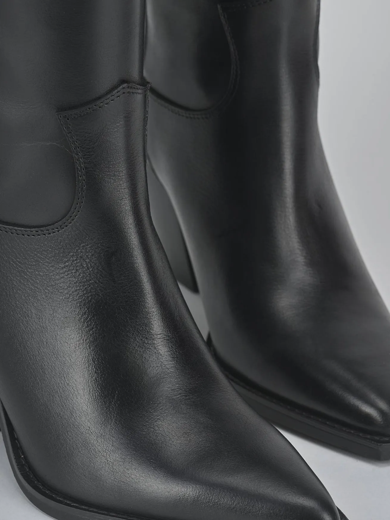 La tomaia in morbida pelle offre un comfort avvolgente, mentre la punta sfilata e le cuciture visibili sul gambale donano un look distintivo e raffinato.
