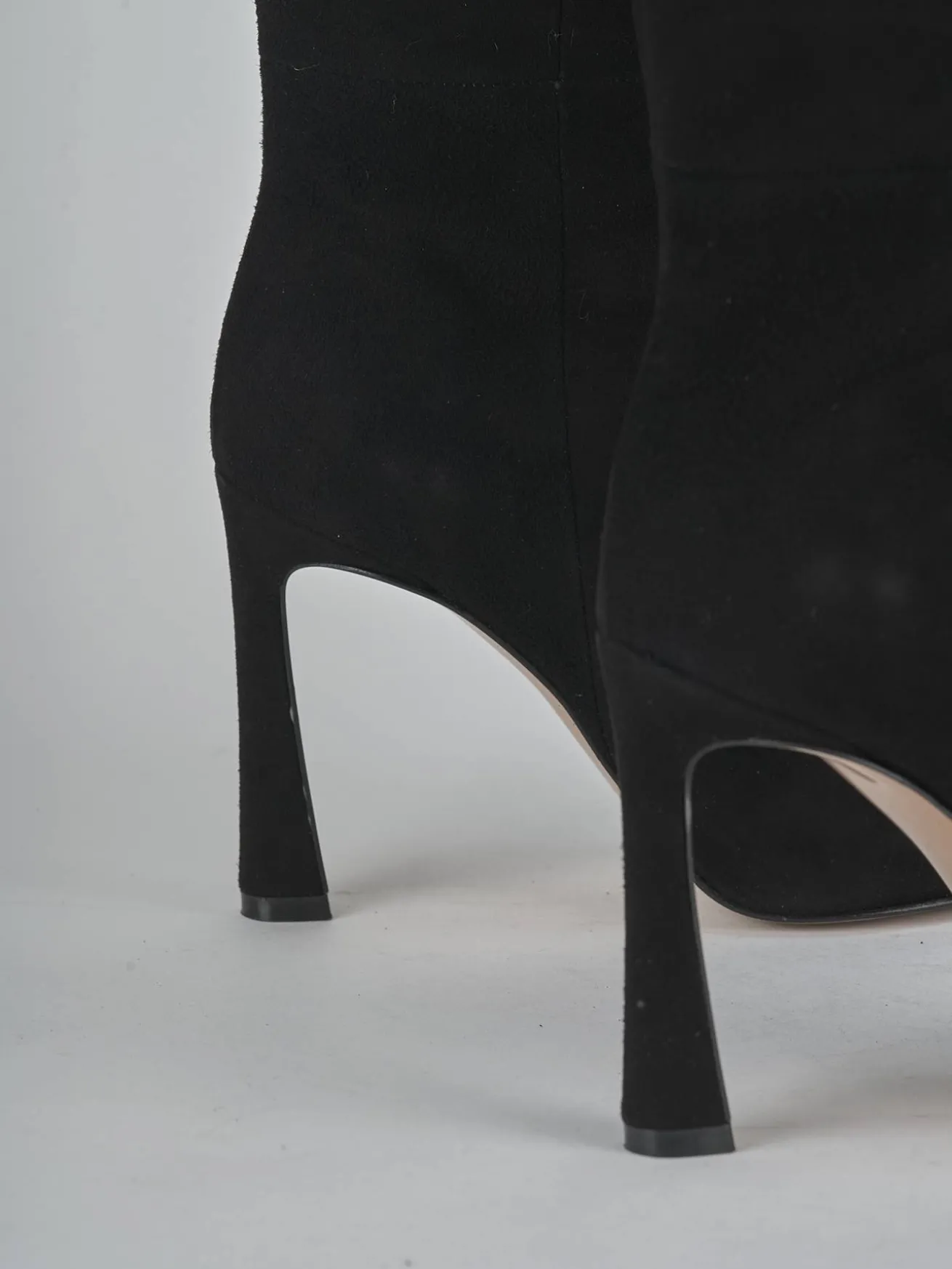 La tomaia in morbido camoscio avvolge la gamba con delicatezza, mentre la punta sfilata conferisce un look slanciato e chic.