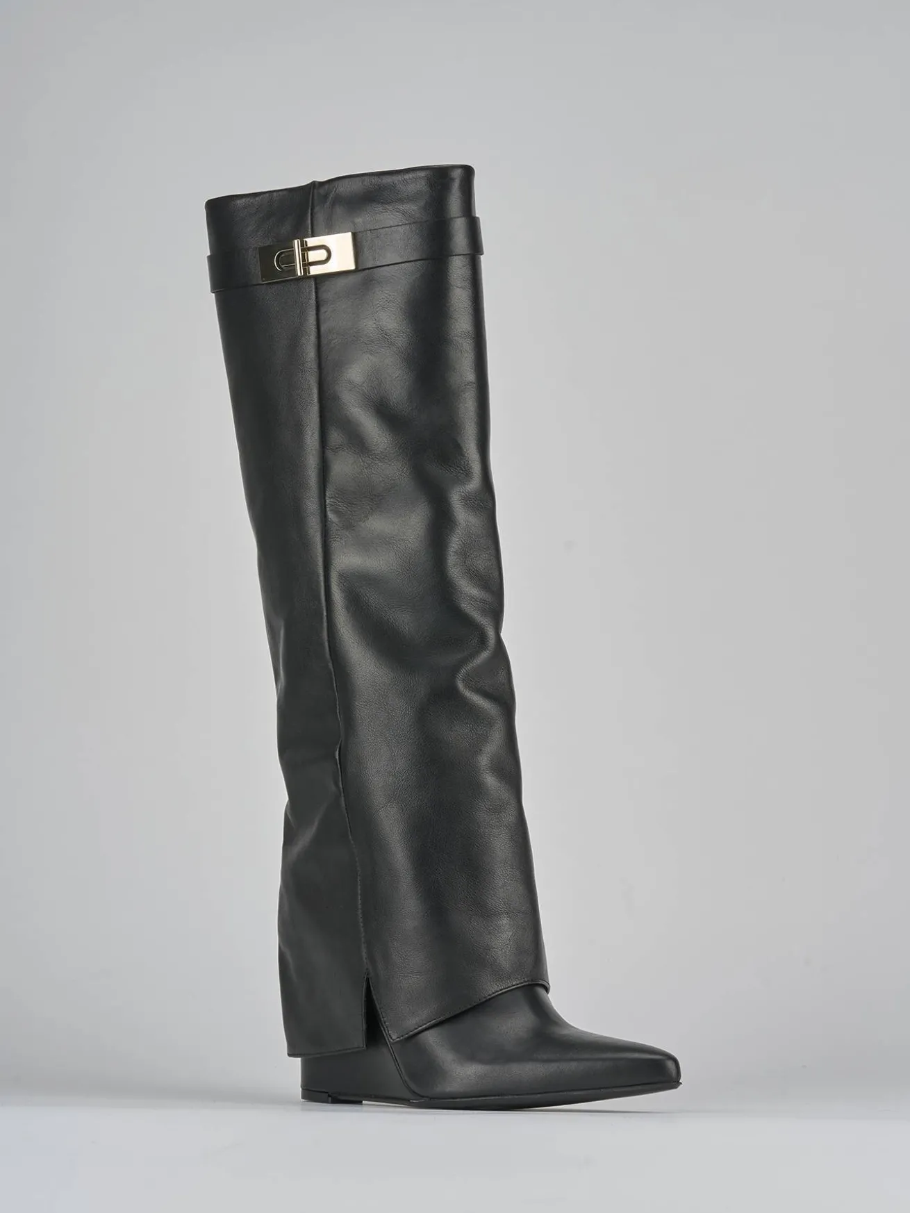 Il risvolto del gambale si ferma appena sotto il ginocchio, offrendo un design elegante e versatile.