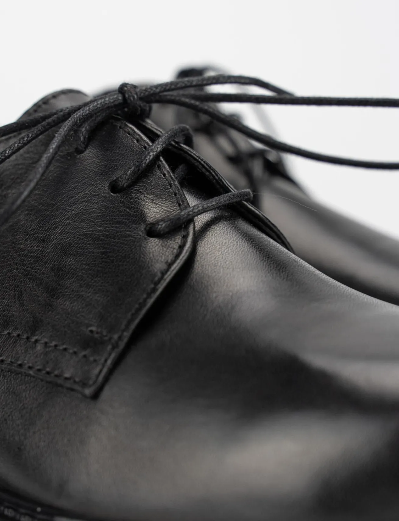 Stringata tacco 2 cm, fondo gomma e soletto in vera pelle. Tomaia in morbida pelle di vitello completamente liscia. Per il tuo rock city style.