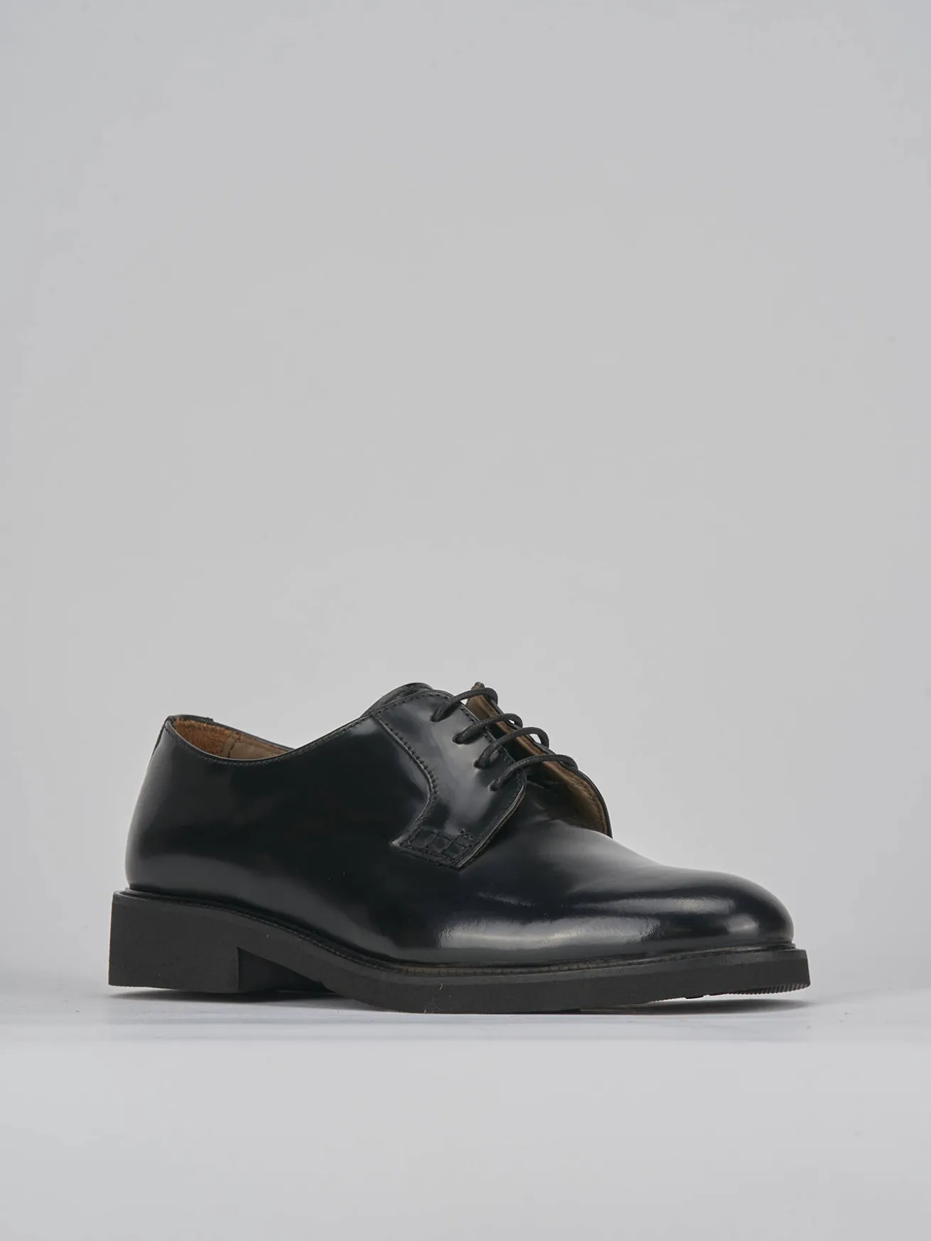 stringata tacco 2 cm fondo in gomma e soletto interno in vera pelle. tomaia in morbida pelle, punta tonda, lace, modello derby. versatile e dalla linee eleganti, perfetta per ogni tua occasione.