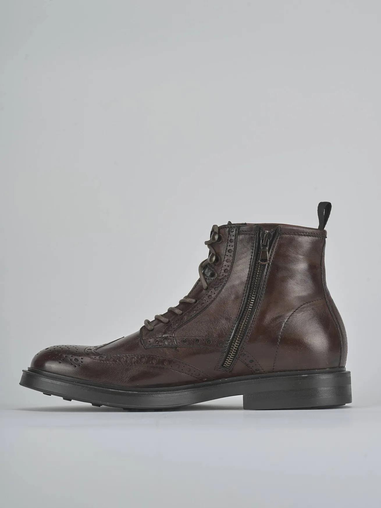 Il design include lacci con fori a taglio vivo e una comoda cerniera laterale per una calzata pratica e veloce.