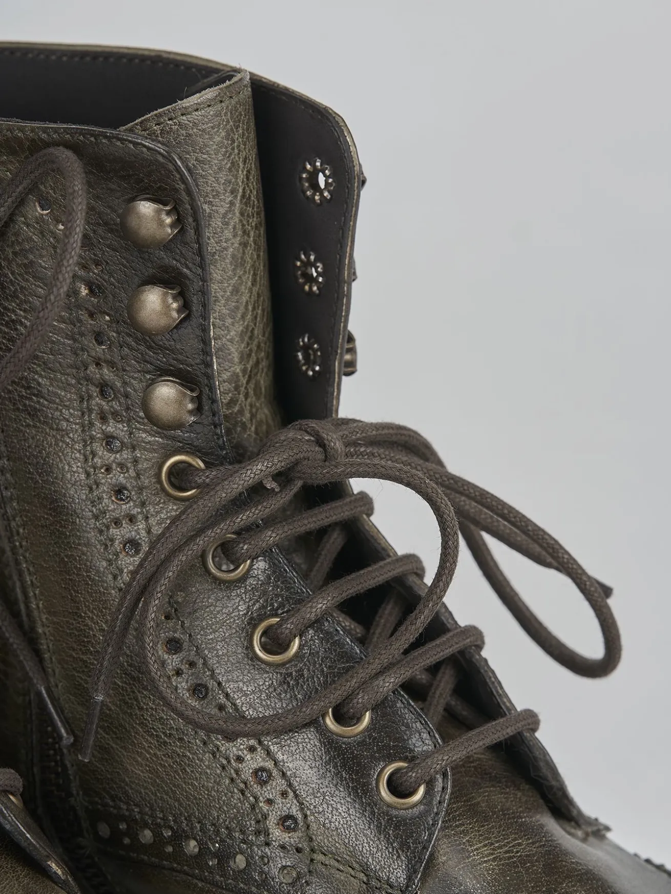 Realizzati in morbida pelle anticata con un affascinante effetto vintage, questi stivali uniscono eleganza e praticità.