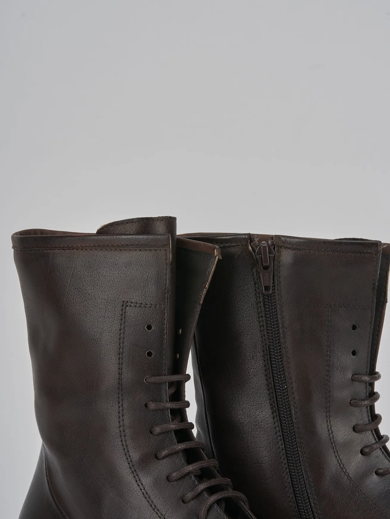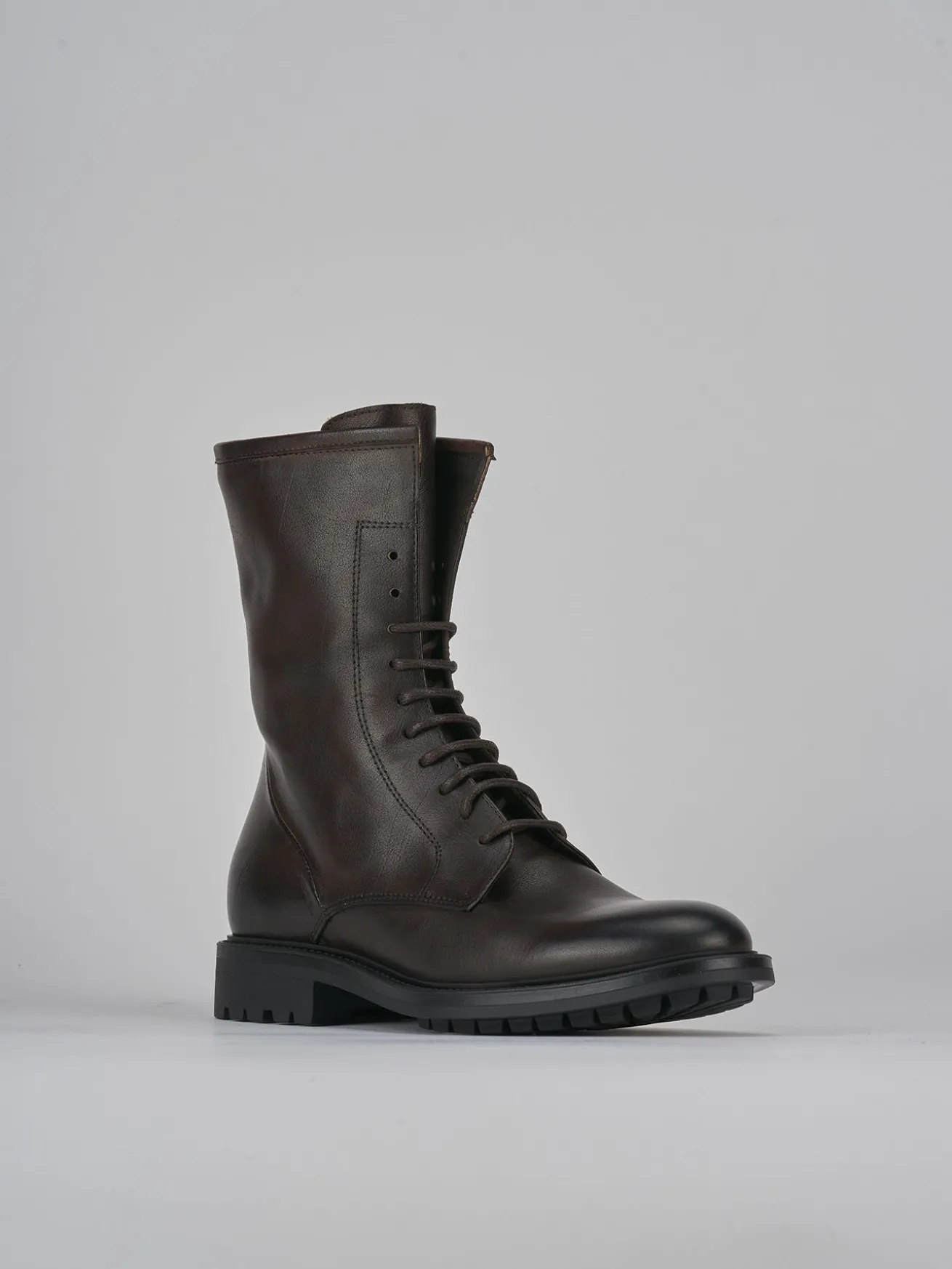 Anfibio tacco 2 cm fondo in gomma e soletto interno in vera pelle. tomaia in morbida pelle, punta tonda, lace e comoda cerniera laterale. dal design pulito, anfibio che durarà nelle stagioni.