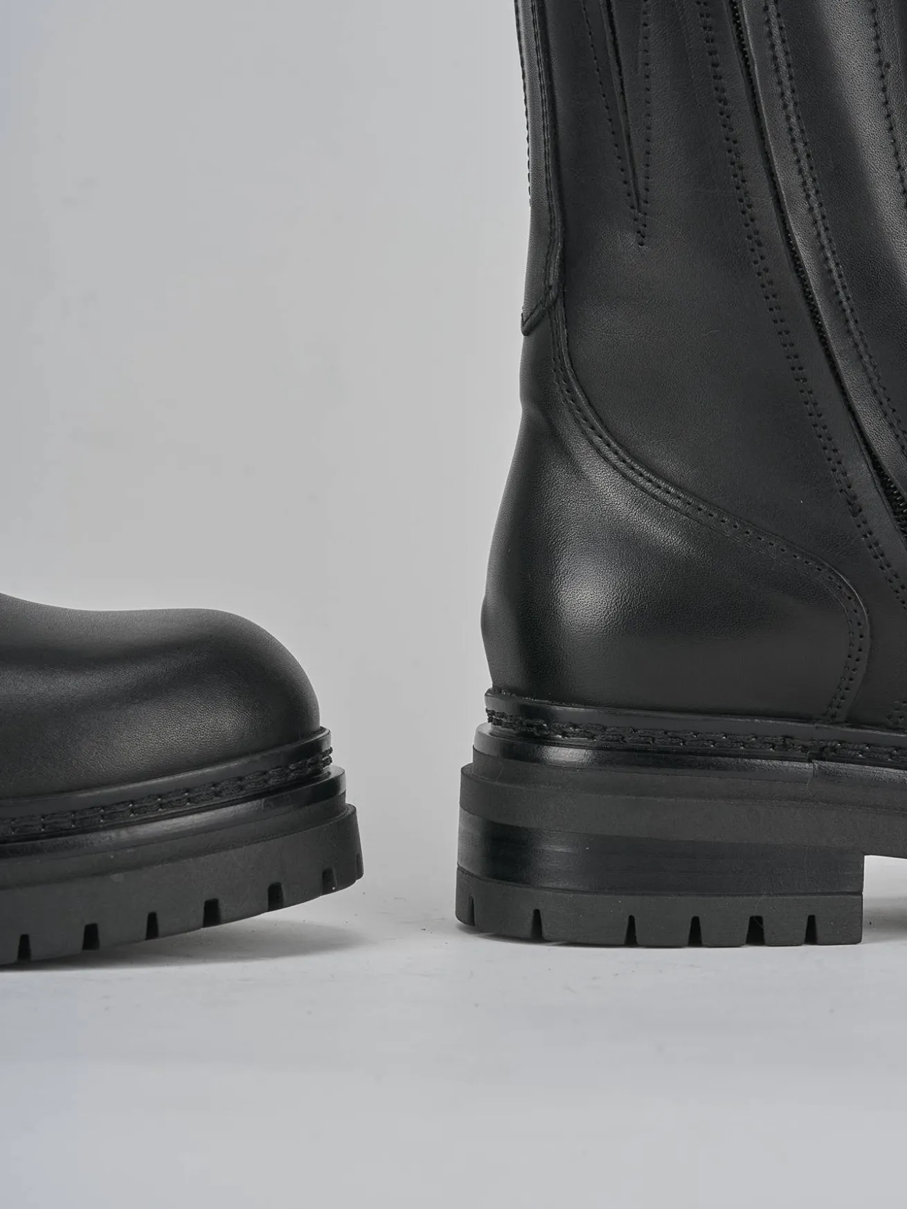 Realizzati in morbida pelle, questi stivali presentano una tomaia raffinata con una punta tonda e cuciture a mano a vista.