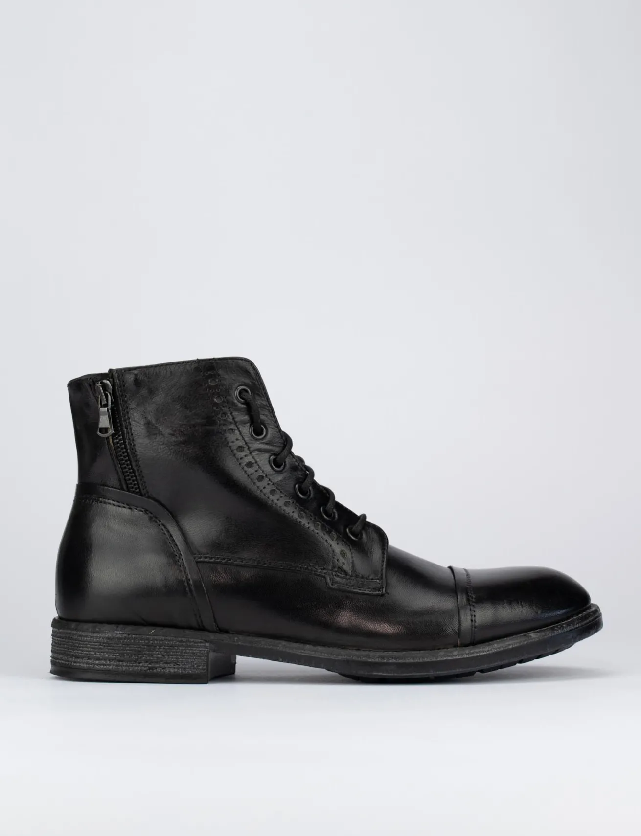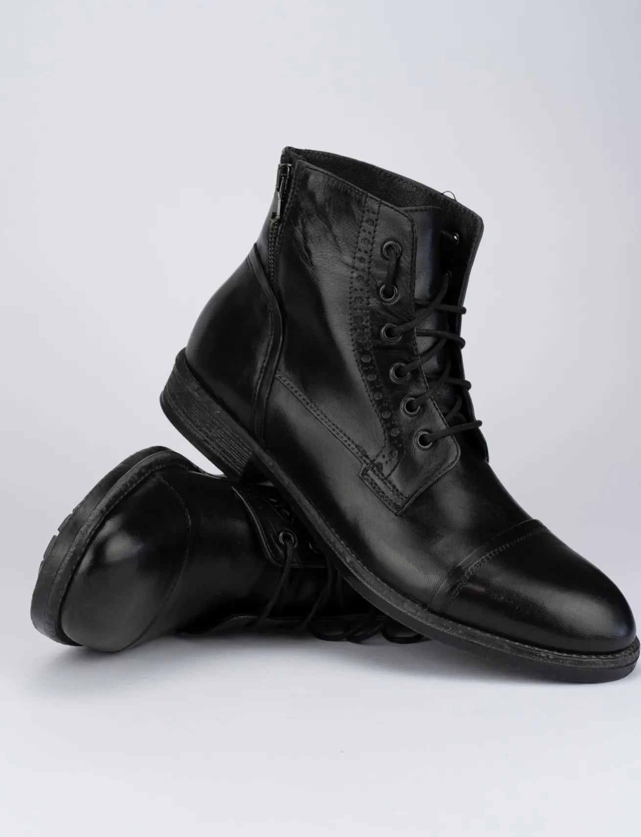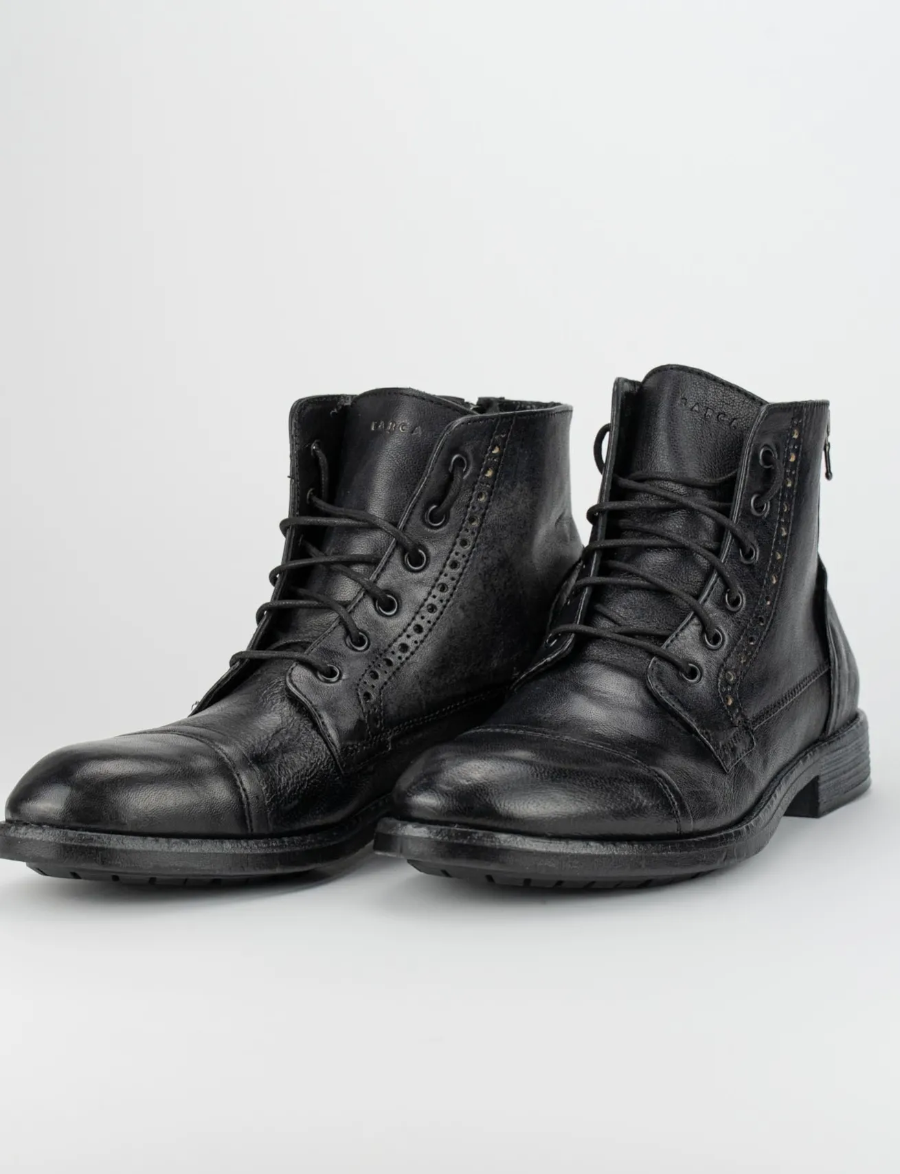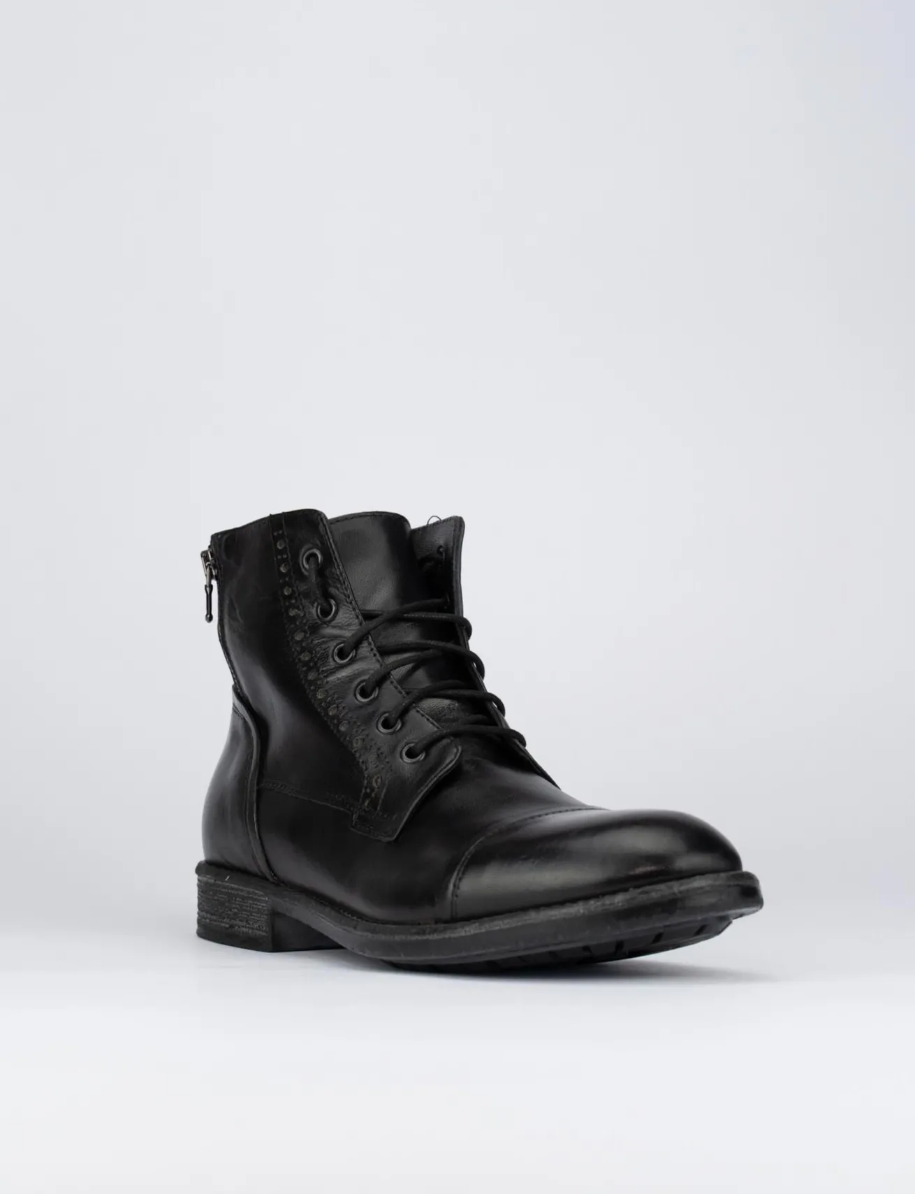 Anfibio fondo gomma e soletto interno in vera pelle. Tomaia in morbida pelle, lace ma comoda cerniera laterale, puntale per un look cool.