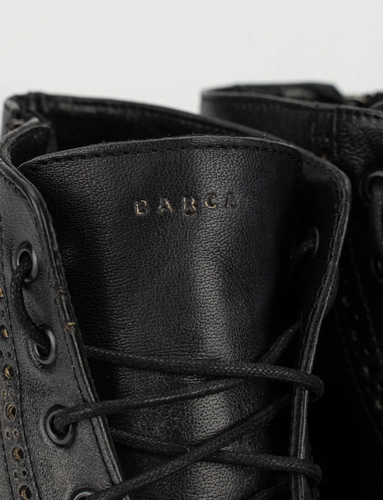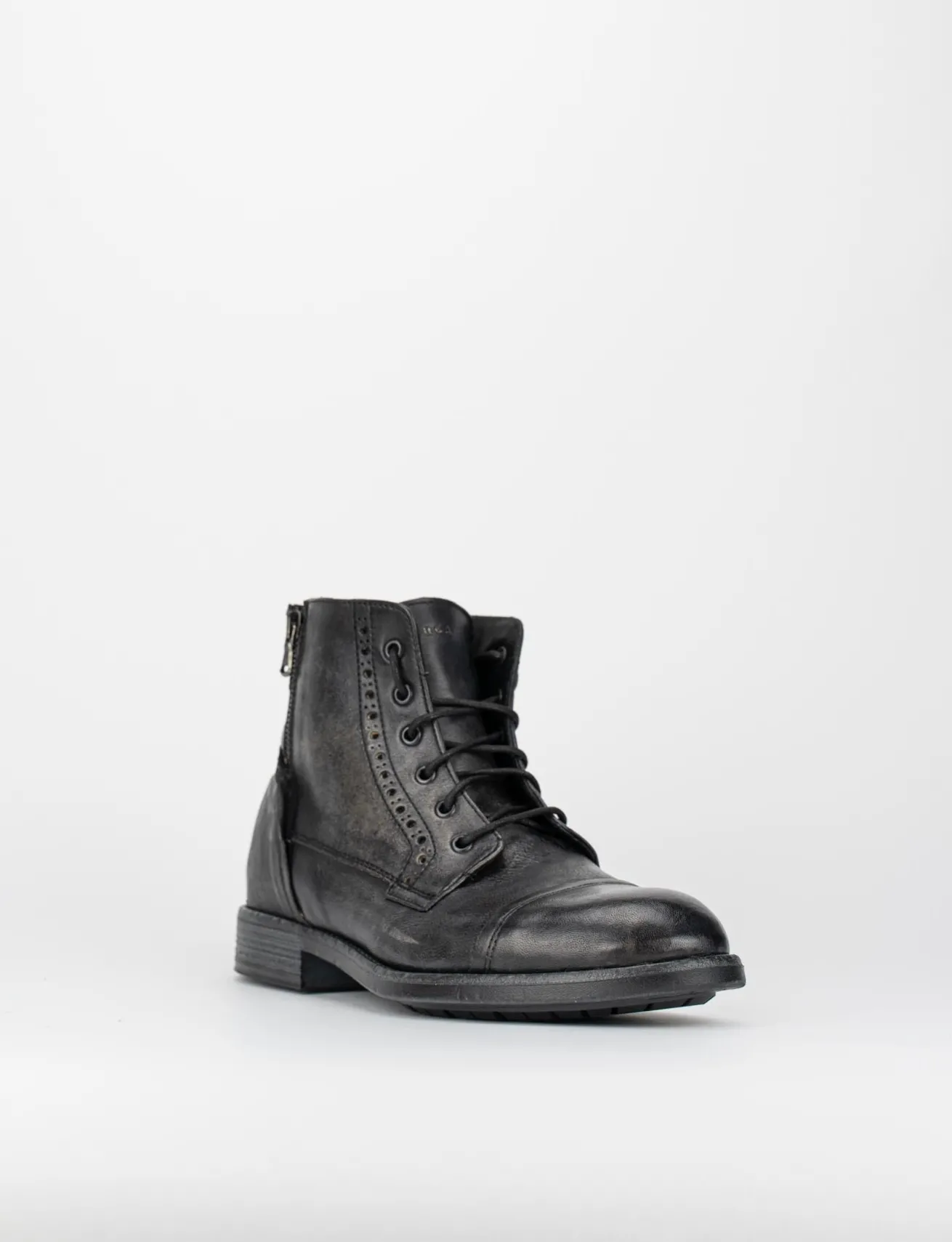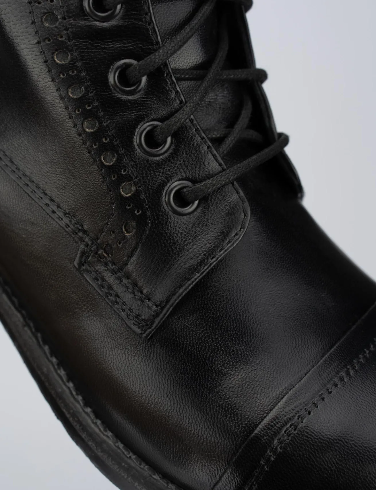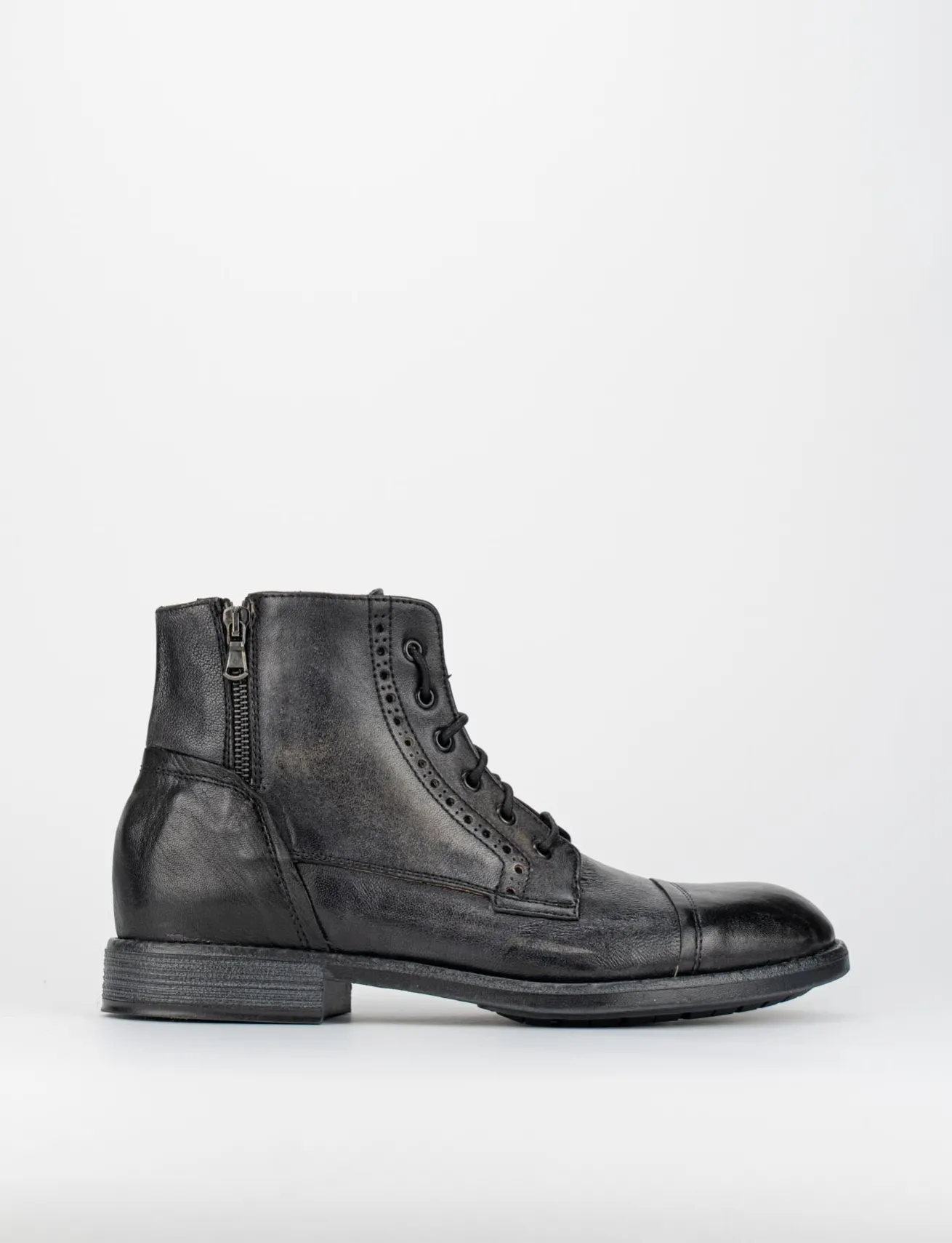 Anfibio fondo gomma e soletto interno in vera pelle. Tomaia in morbida pelle, lace ma comoda cerniera laterale, puntale per un look cool.