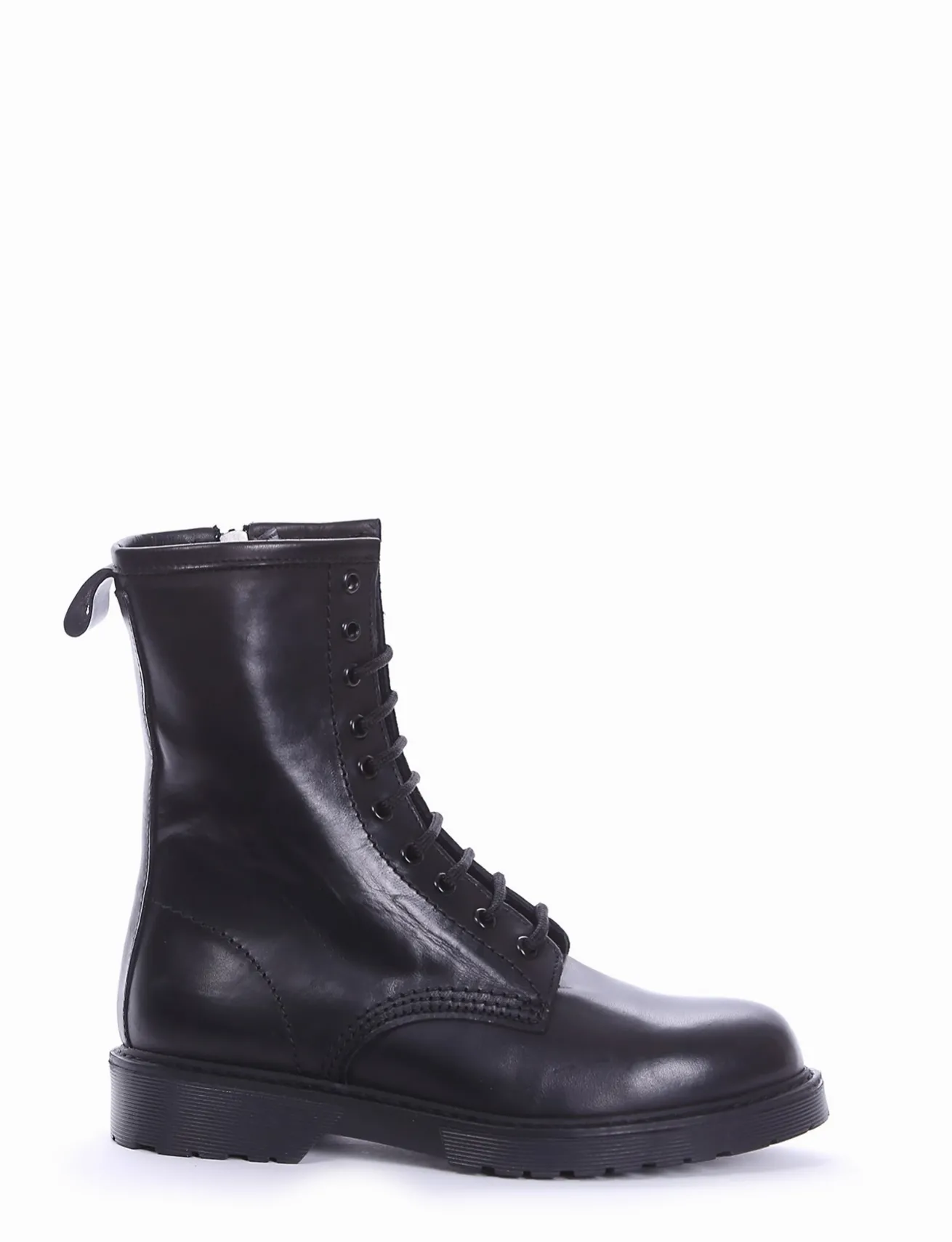 Anfibio tacco 2cm, fondo gomma e soletto interno in vera pelle. Tomaia in morbida nappa e allacciatura a 10 buchi per un classico senza tempo.