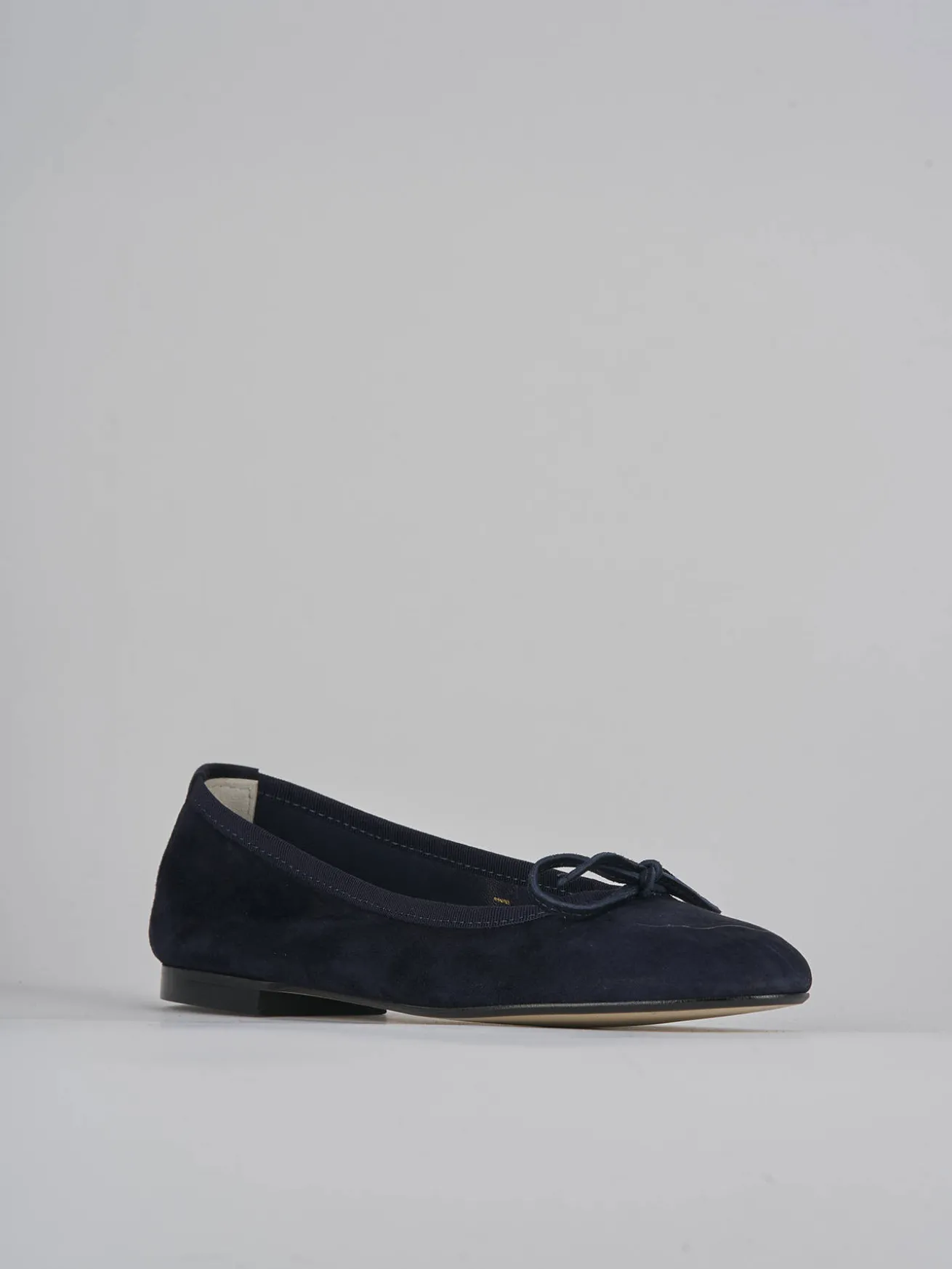 La tomaia in morbido camoscio abbraccia il piede, mentre la punta tonda e il delicato fiocchetto conferiscono un tocco di femminilità sobria.