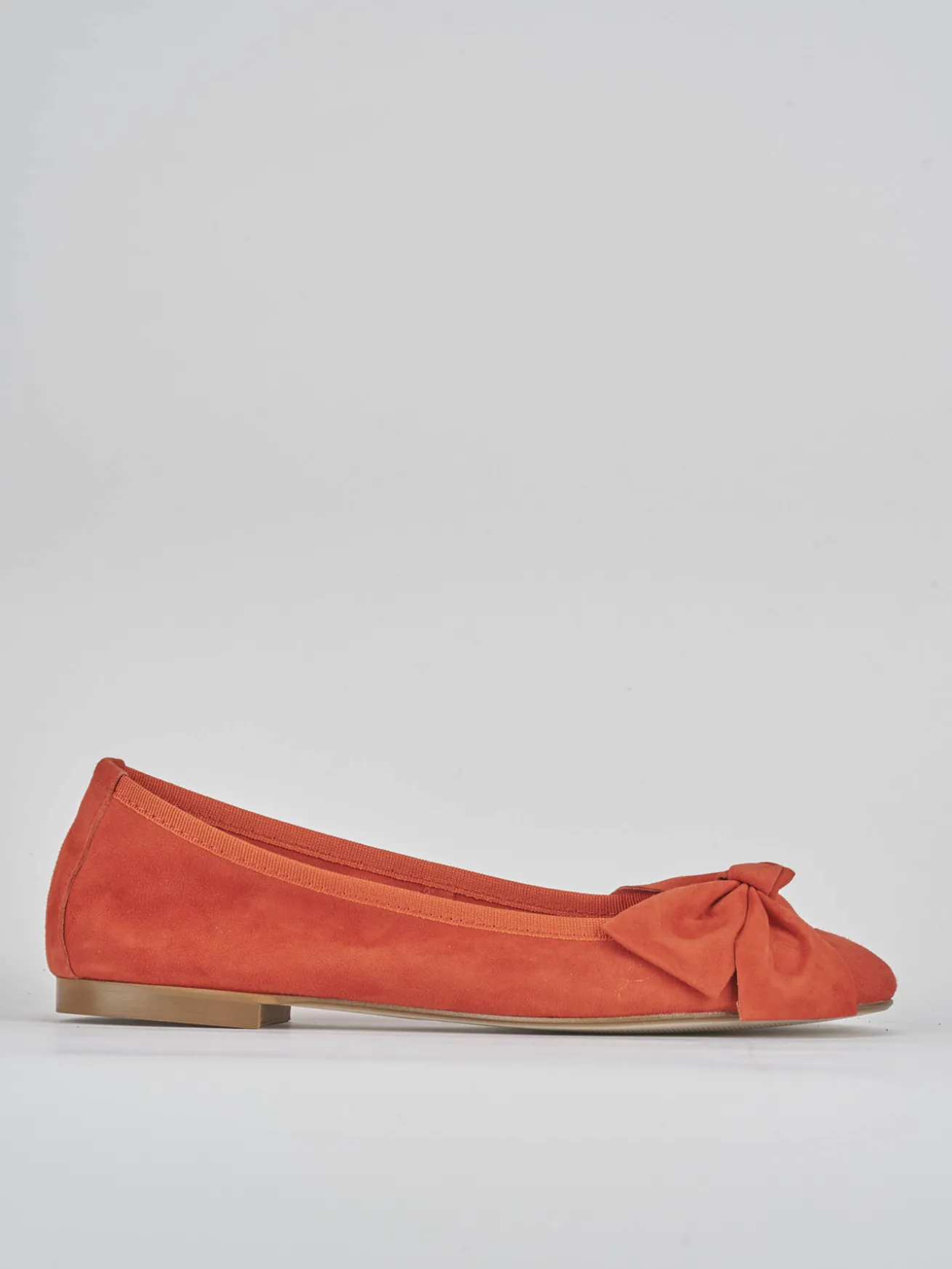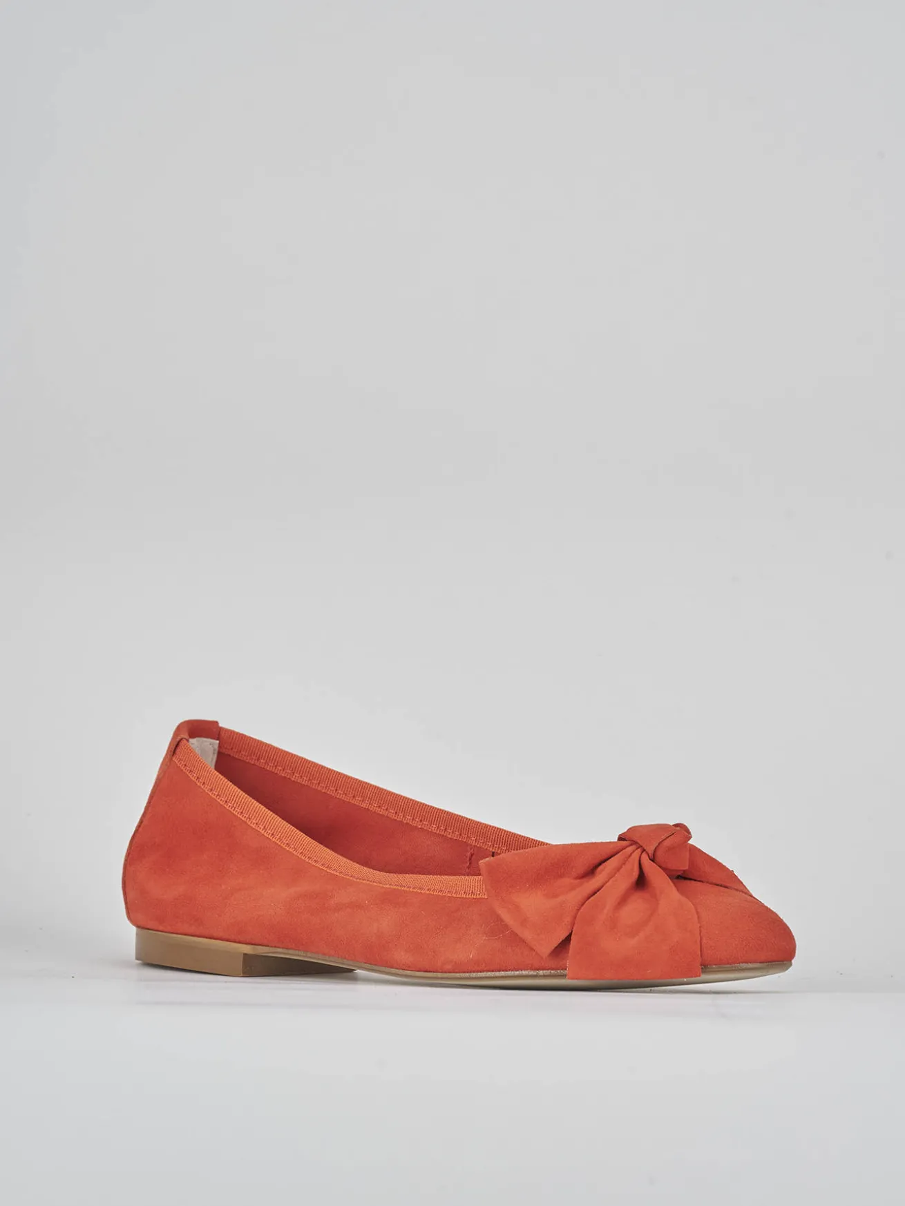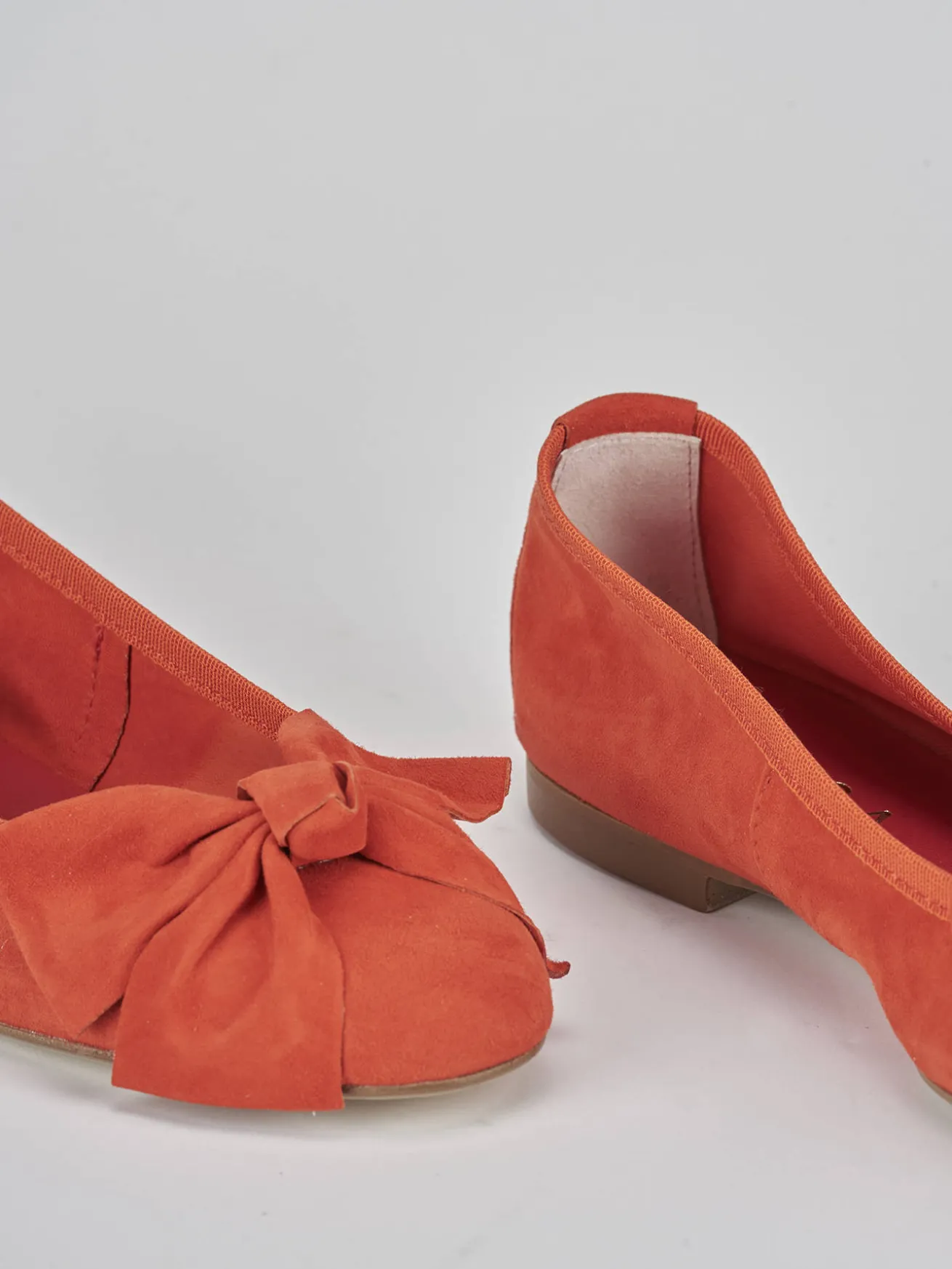 La tomaia in morbido camoscio accarezza il piede, mentre la punta tonda e il fiocco aggiungono un dettaglio femminile delicato.