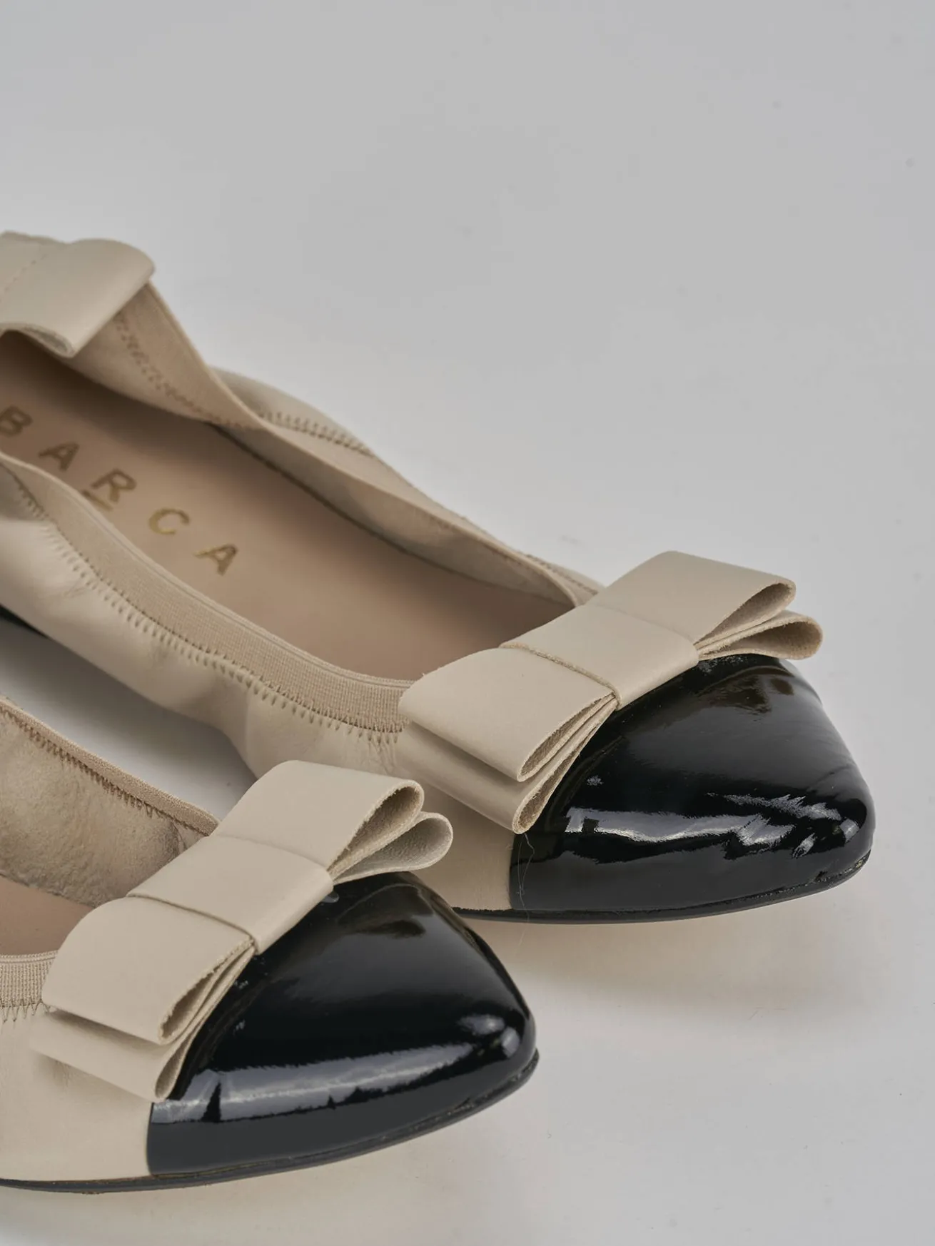La punta sfilata e il puntale in vernice bicolor donano un tocco di eleganza moderna.