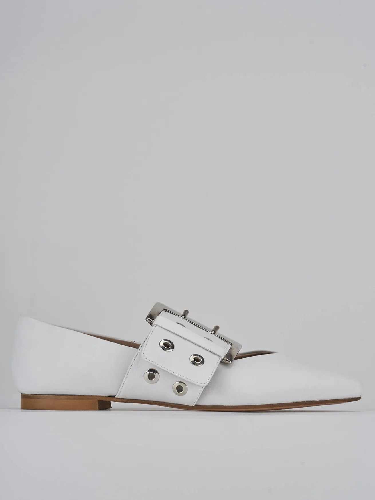 Il cinturino spesso con fibbia regolabile e le borchie decorative rendono queste ballerine davvero uniche e accattivanti.