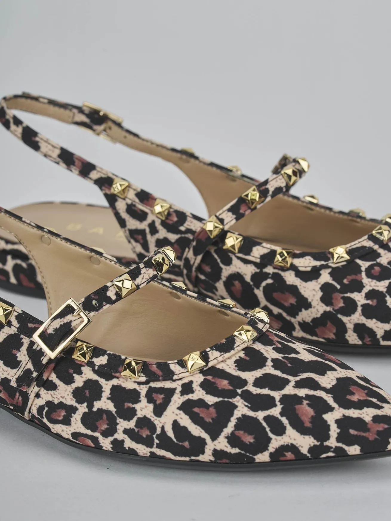 La punta sfilata e lo scollo morbido a ‘U’ conferiscono un tocco di raffinatezza, mentre il fiocco e le borchie aggiungono un elemento di carattere.