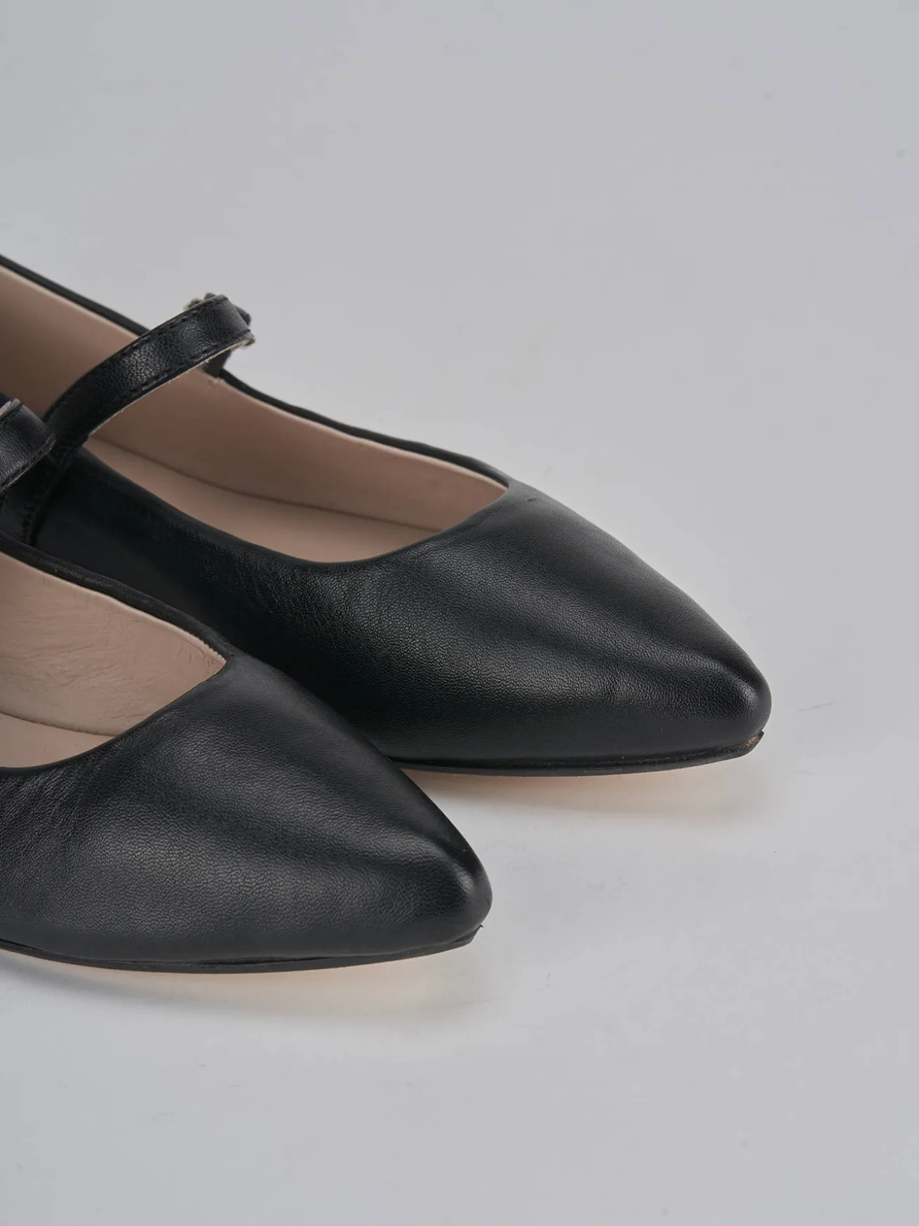 La punta sfilata conferisce un’eleganza sobria, mentre lo scollo squadrato aggiunge un dettaglio distintivo al design.