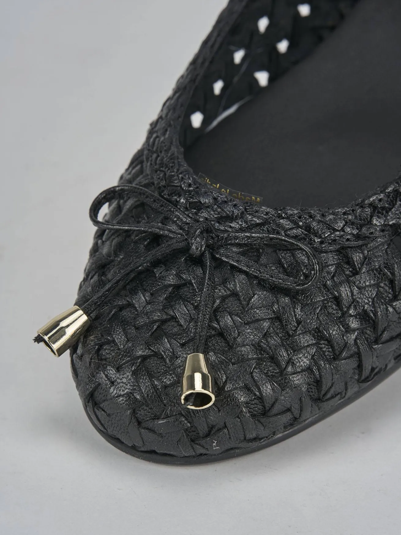 La tomaia è realizzata in morbida pelle finemente intrecciata, che conferisce un aspetto sofisticato e delicato.
