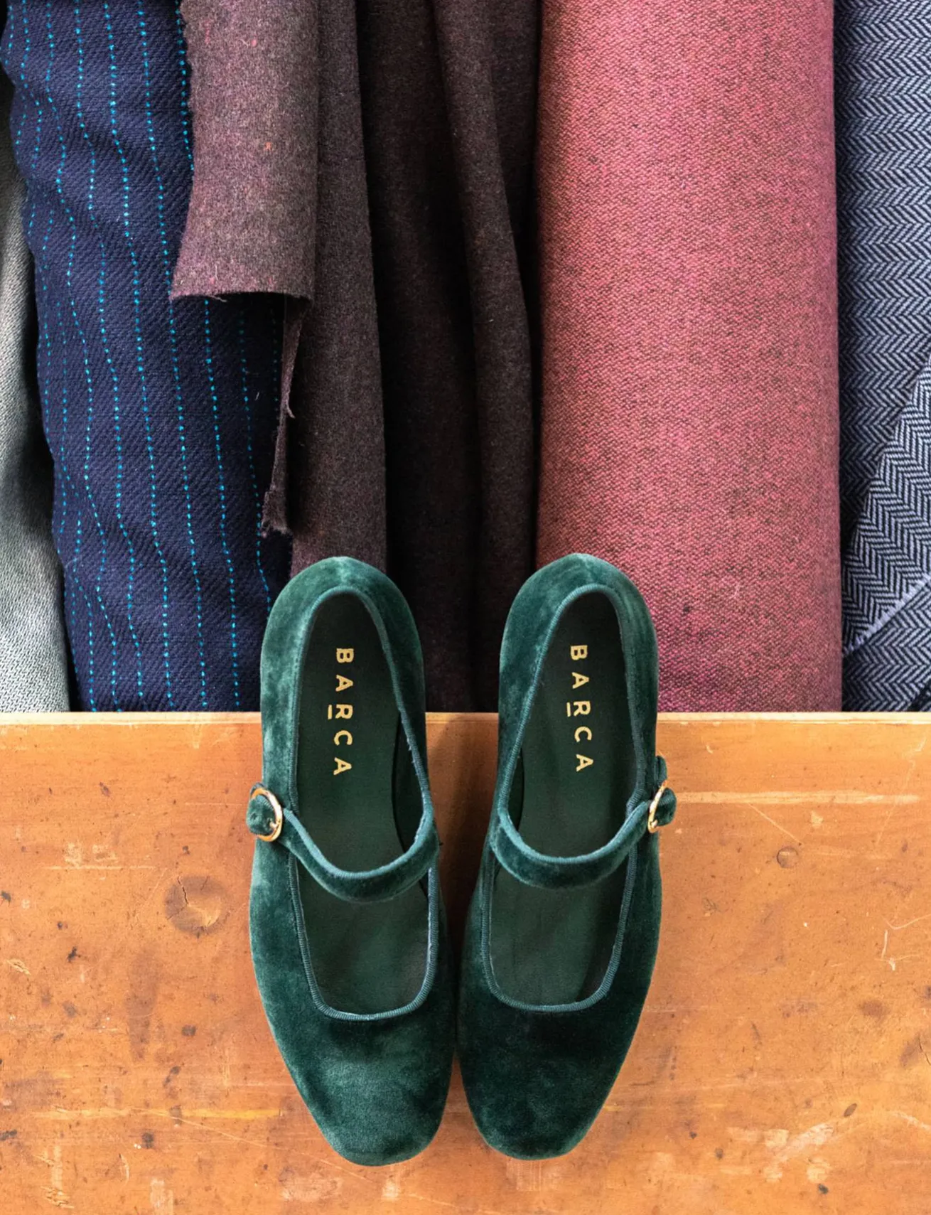 La tomaia è realizzata in morbido e lucente velluto, conferendo un aspetto raffinato e piacevole al tatto.